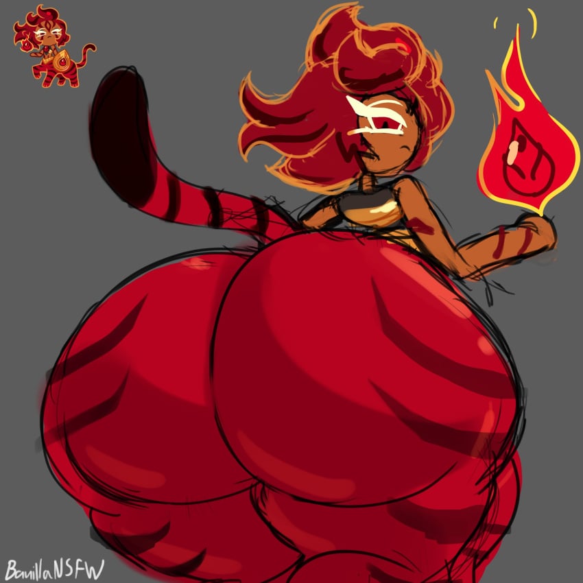 I remember one of the past threads having 2 photos : -1 with Raspberry Cookie wearing black lingerie and holding her sword - 1 with Tiger Lilly Cooke in a slightly humanoid body, with her belly sticking out from under her skirt
