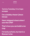 This thread likely refers to music with a direct reference to feederism, but to support the idea, I'll throw in something that doesn't directly fit. Judging by the track's lyrics, the main character is BBW: https://www.youtube.com/watch?v=A8GSCOOCxus Bosshoss has a cool video with fat girls. There's nothing particularly specific in the lyrics, but I think the vibe is good: https://youtu.be/I2cRblmbB6I?si=xBZSo9cl32KcRIka