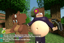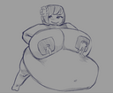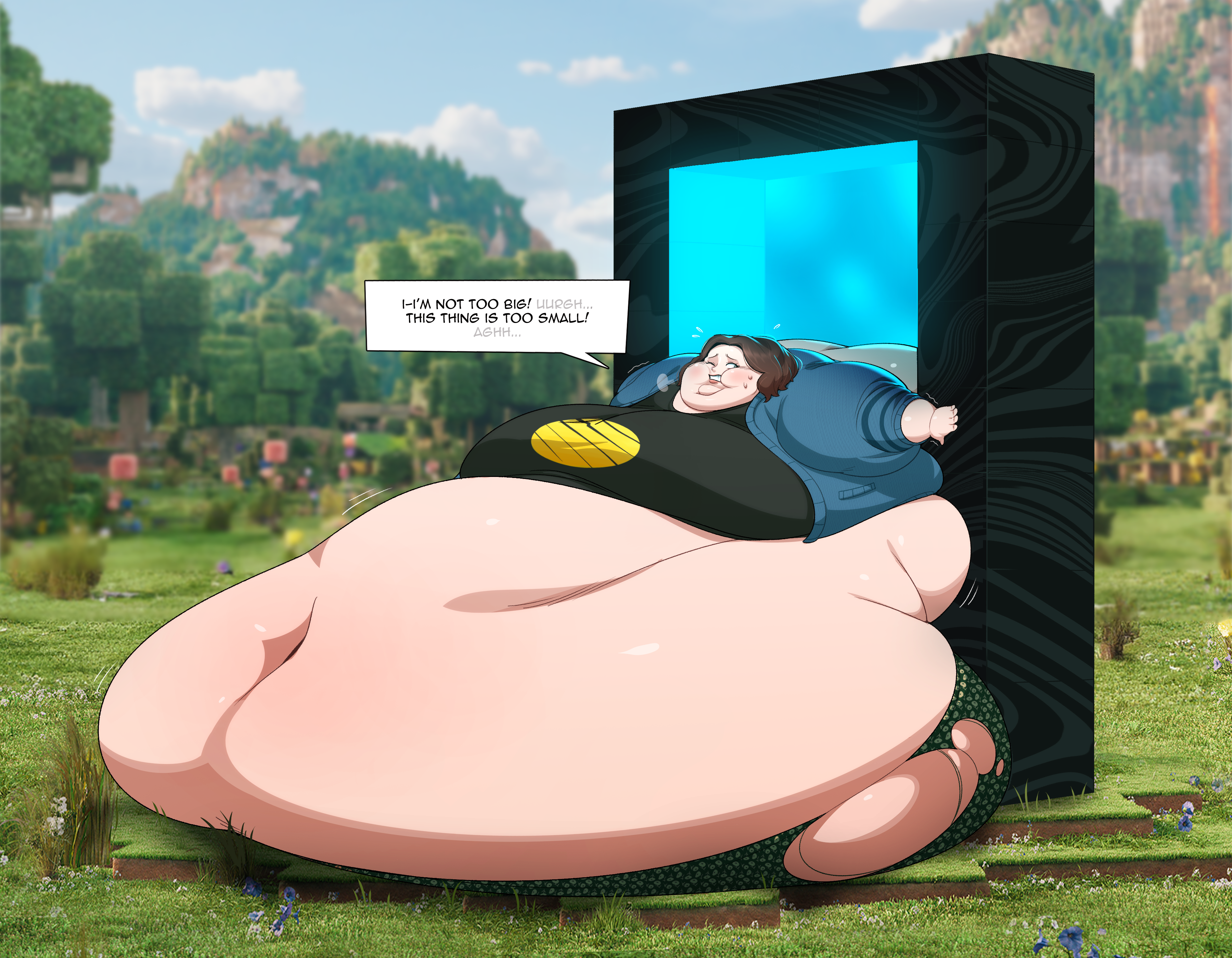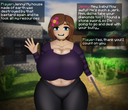 It was about Alex asking an alley for many buckets of water, but since he can only carry one, the alley in the second panel comes back full of water, but gives it to Alex, He brings her more buckets and gives them to her to drink, inflating her too much.