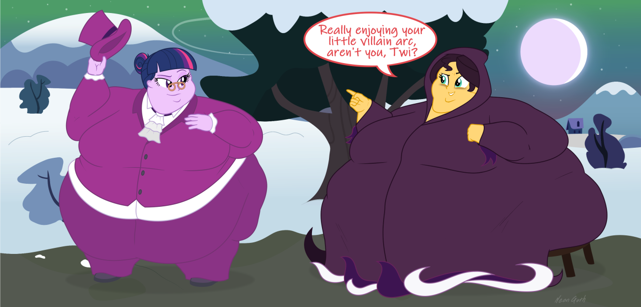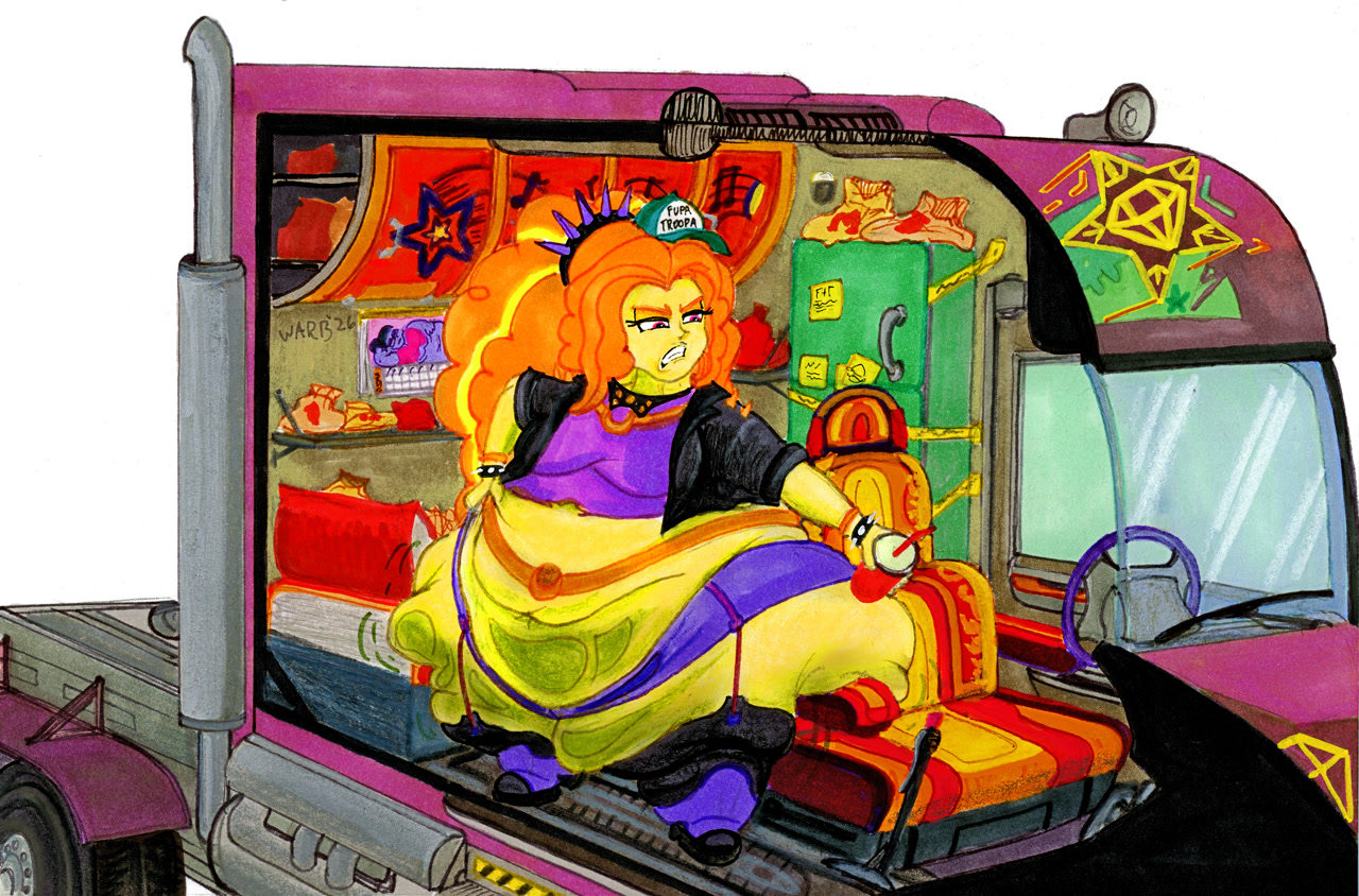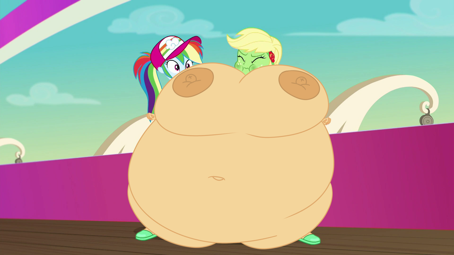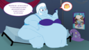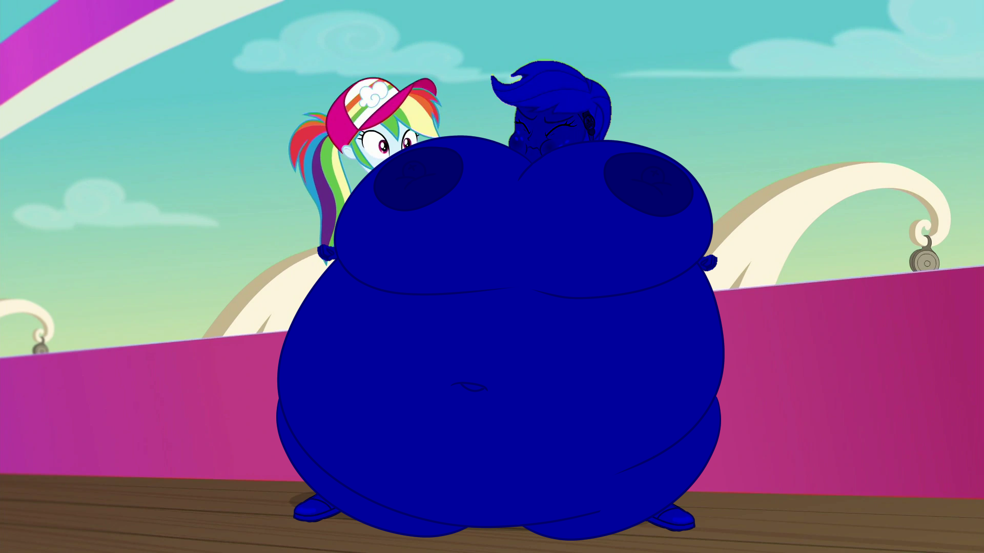 Looking down again at that cumbersome brace, Rainbow groaned as she fell back on her bed. She cringed slightly as she felt her flabby gut wobble beneath her skin-tight tee, dreading what’s to come of her growing waistline.