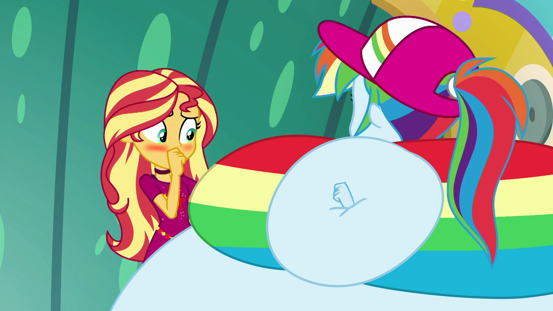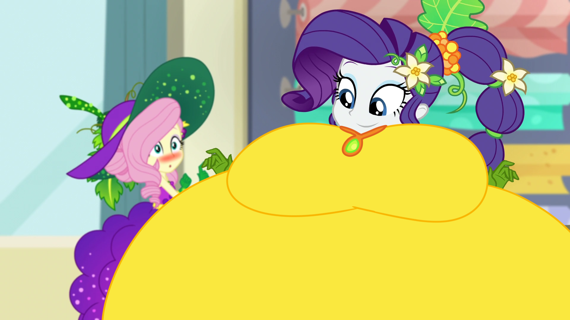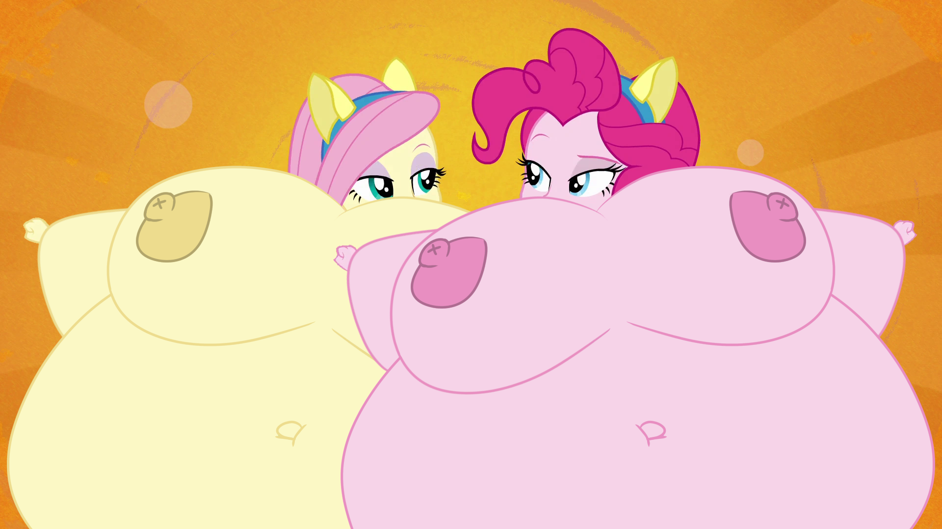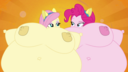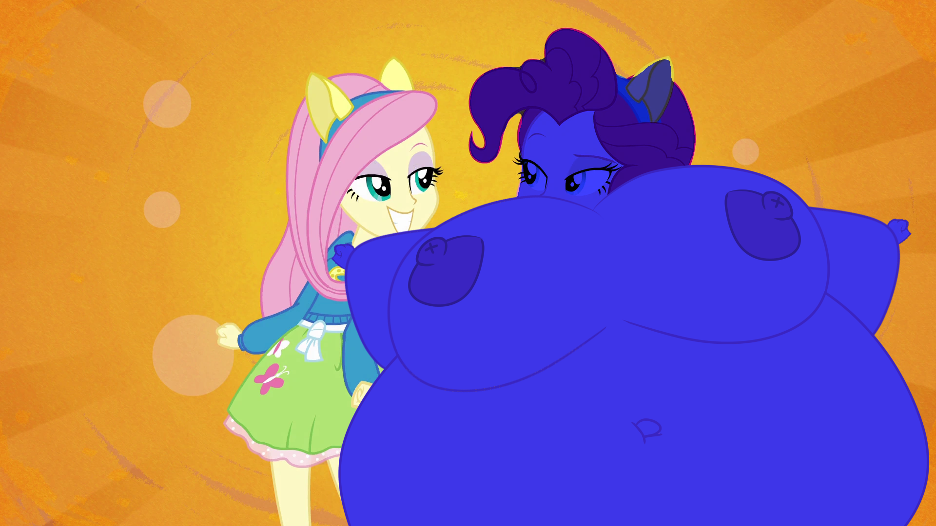 Looking down again at that cumbersome brace, Rainbow groaned as she fell back on her bed. She cringed slightly as she felt her flabby gut wobble beneath her skin-tight tee, dreading what’s to come of her growing waistline.