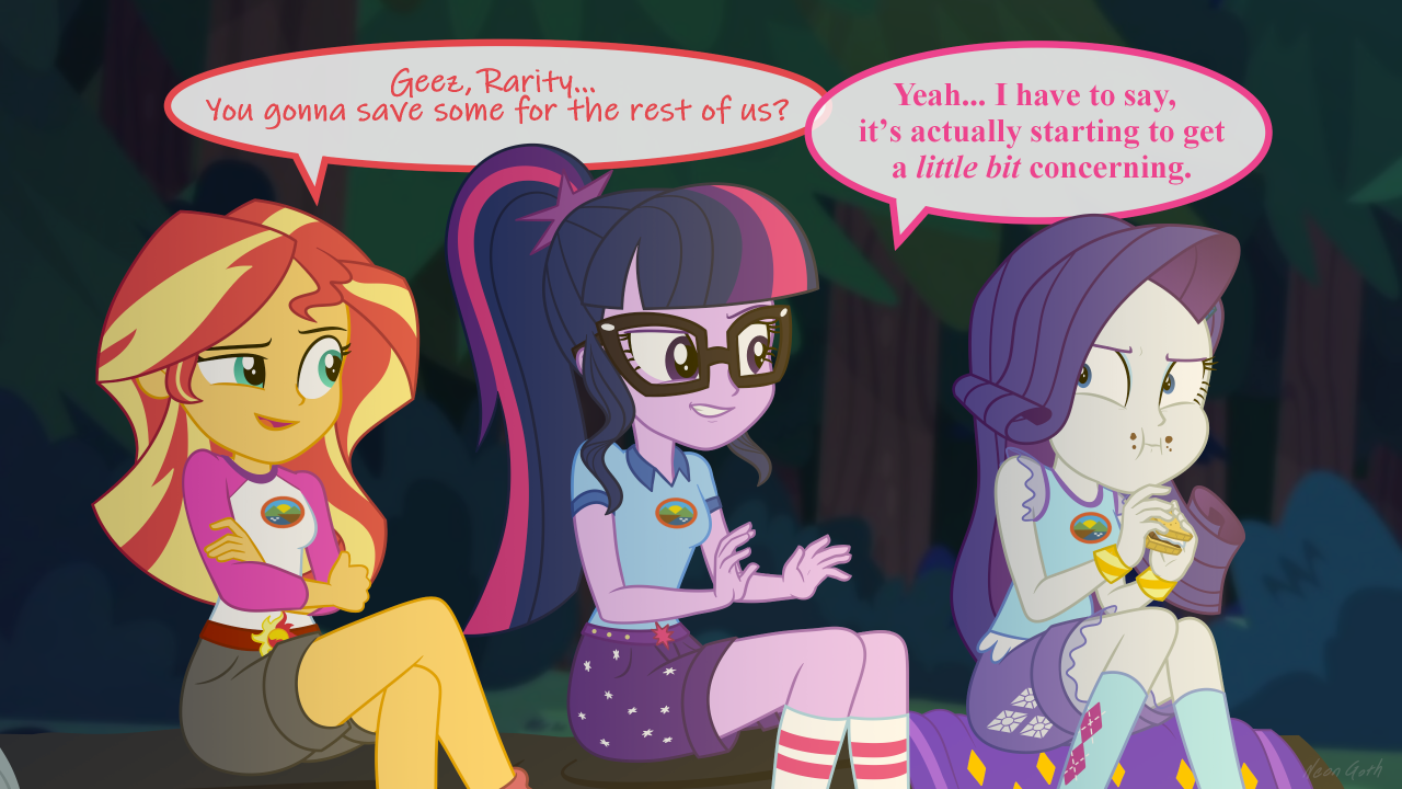 “Oh, definitely,” Rarity added. “If I were in your position, darling, I would use that ankle as an excuse to splurge and treat myself. Granted, I already do that. But my point still stands. Haha!”