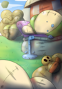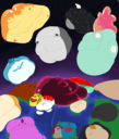> On New Year’s Eve, hundreds of people gather to watch the ball drop > Everyone is eagerly waiting to be “new” > Once the countdown hits one, the ball opens, and everyone present inflates to the size of Houses > Their heads, hands, and feet are sucked into their ballooned bodies. > Their clothes stretch with them > Everyone floats into a giant cloud of inflated people.