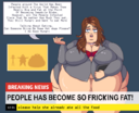 Wish this would/could happen irl. The world would be so much better if everyone was big, fat, and round. I think humans are supposed to be fat. It's not necessarily our natural state, but it's the state we're meant to atain. We're so much better when we're fat and dripping with lard. The average weight of the world should be 400 lbs. AT BARE MINIMUM. You should be made fun of for being under 400. Anyone below 250 is a skinny freak and I don't trust them. Humanity NEEDS to be fat. If you see a skinny person on the street, take them and stuff them with sweets, you're doing the world a service. The future is fat. All skinnies need to be fattened. Humanity is grand, and need to act/look like such. I cannot picture a body reflecting humanity's greatness that isn't fat. The future is fat. The world NEEDS to be fat. Everyone reading this should gain twenty pounds. The world NEEDS to be fat. All skinnies need to be sent to a place were they can be fattened. Everyone should be big and fat, because it's great.