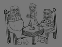 Can I have a remake of the first photo shown in the spoiler replacing Leonie for Yunaka both her and Marianne are eating candied fruits made by Clanne both of them are enjoying their meal.