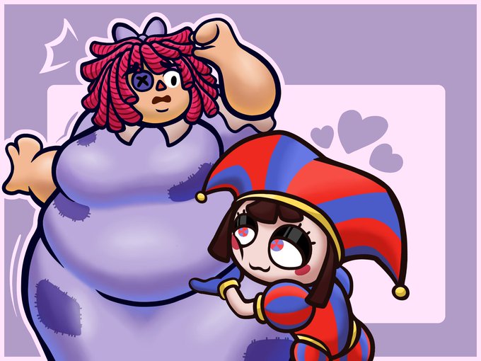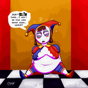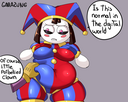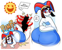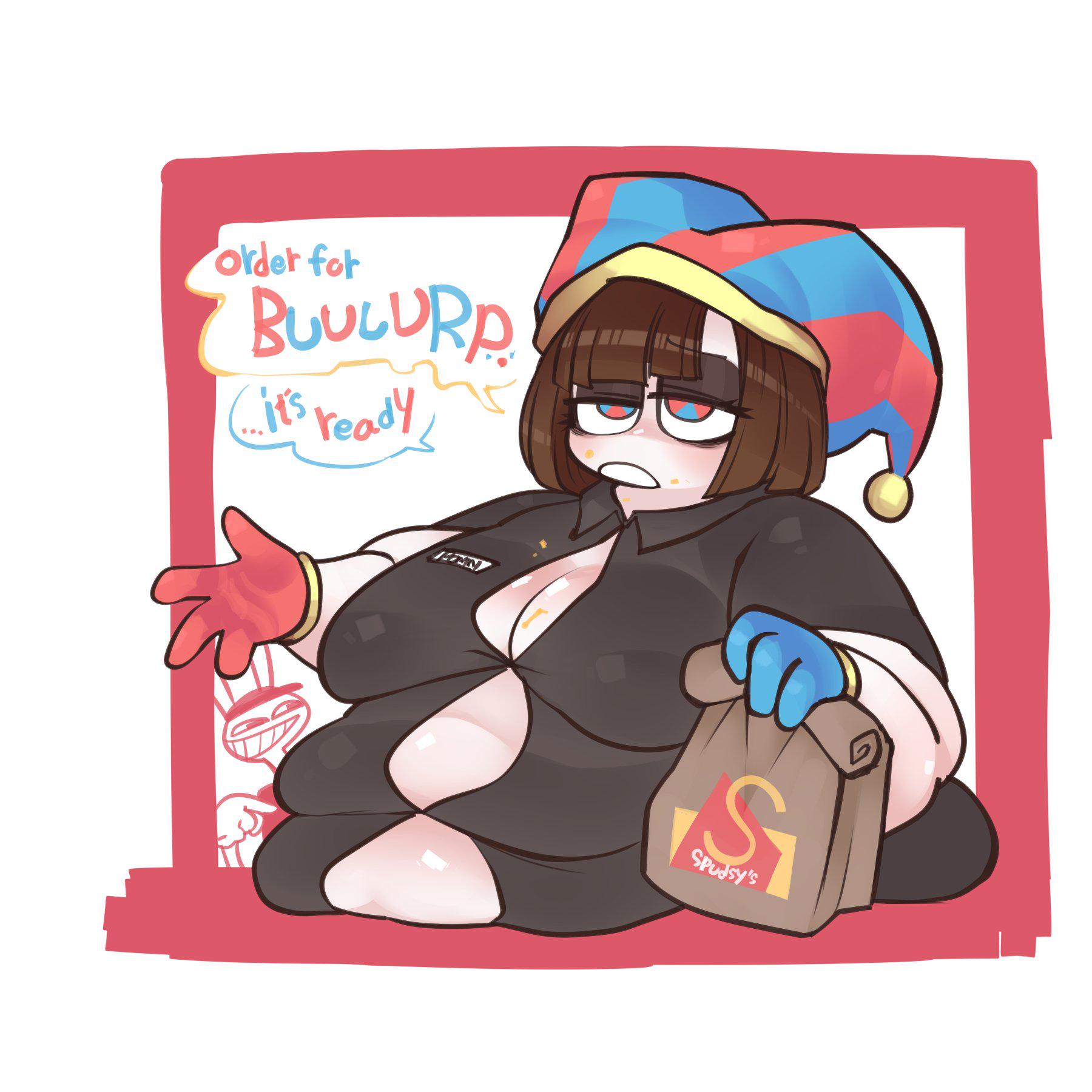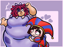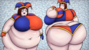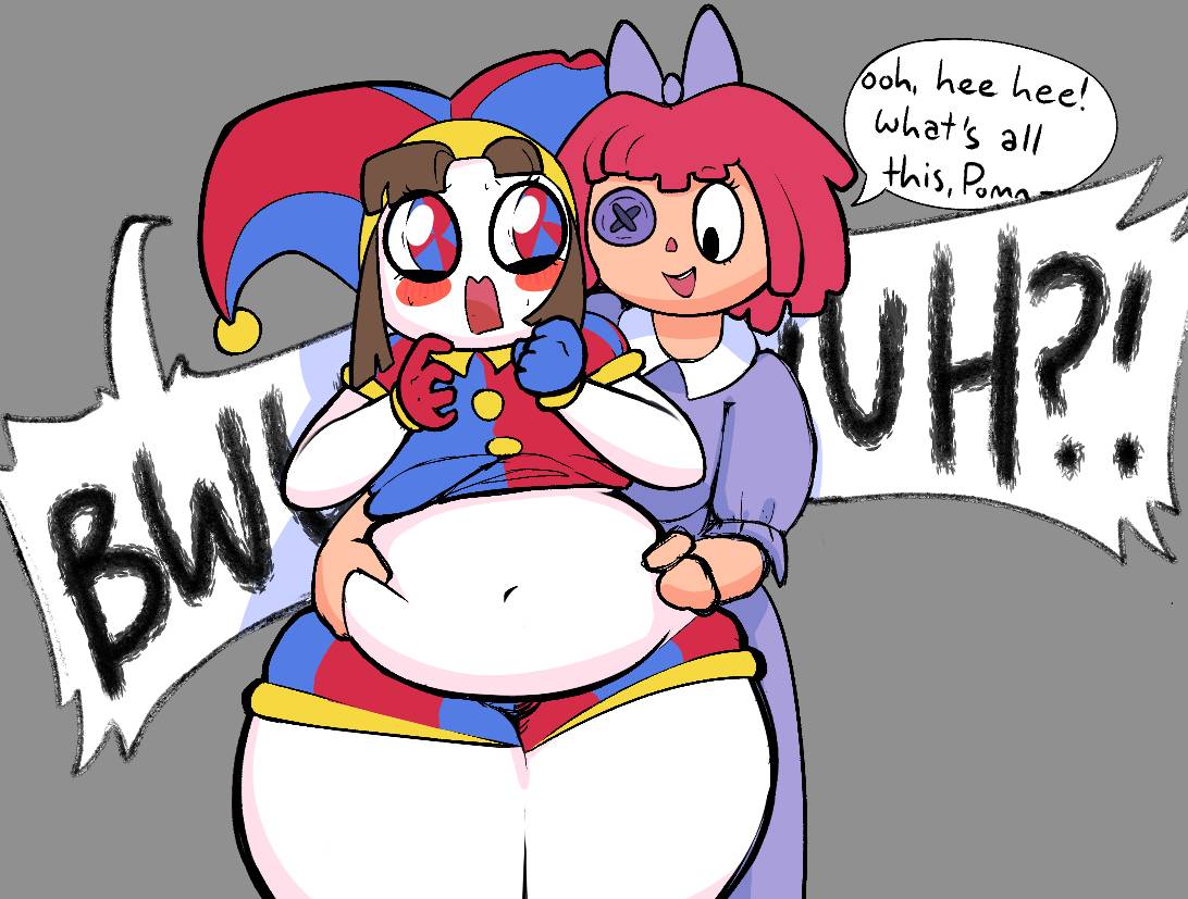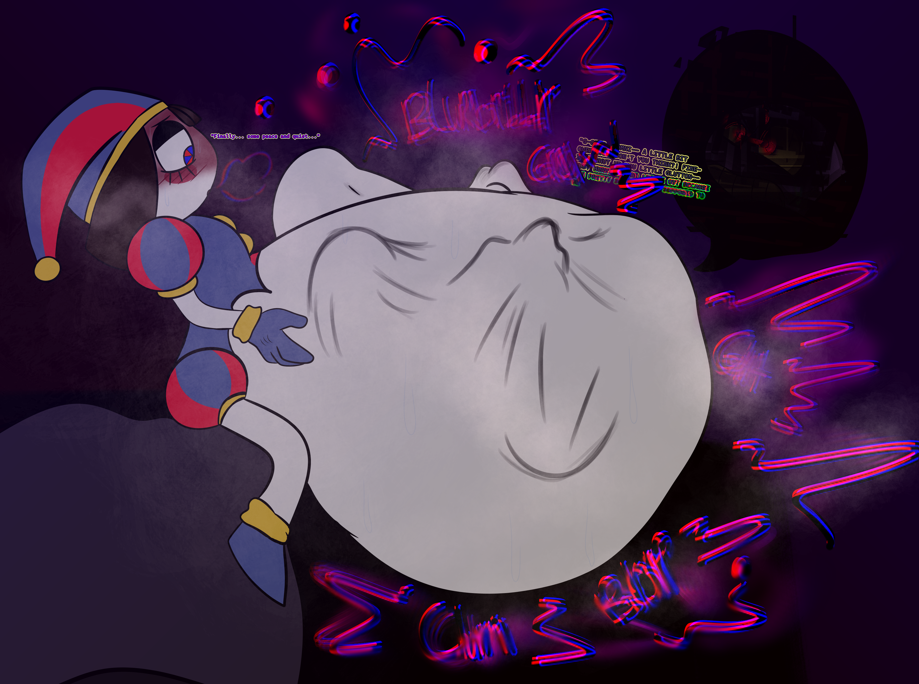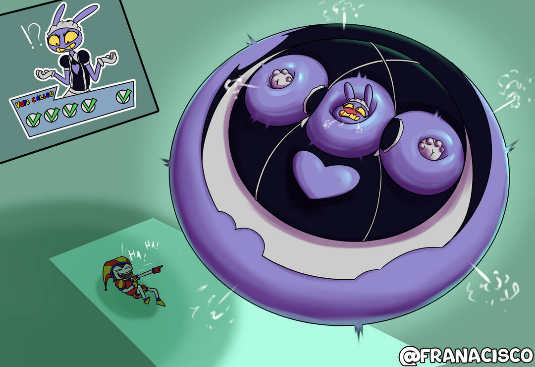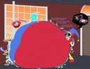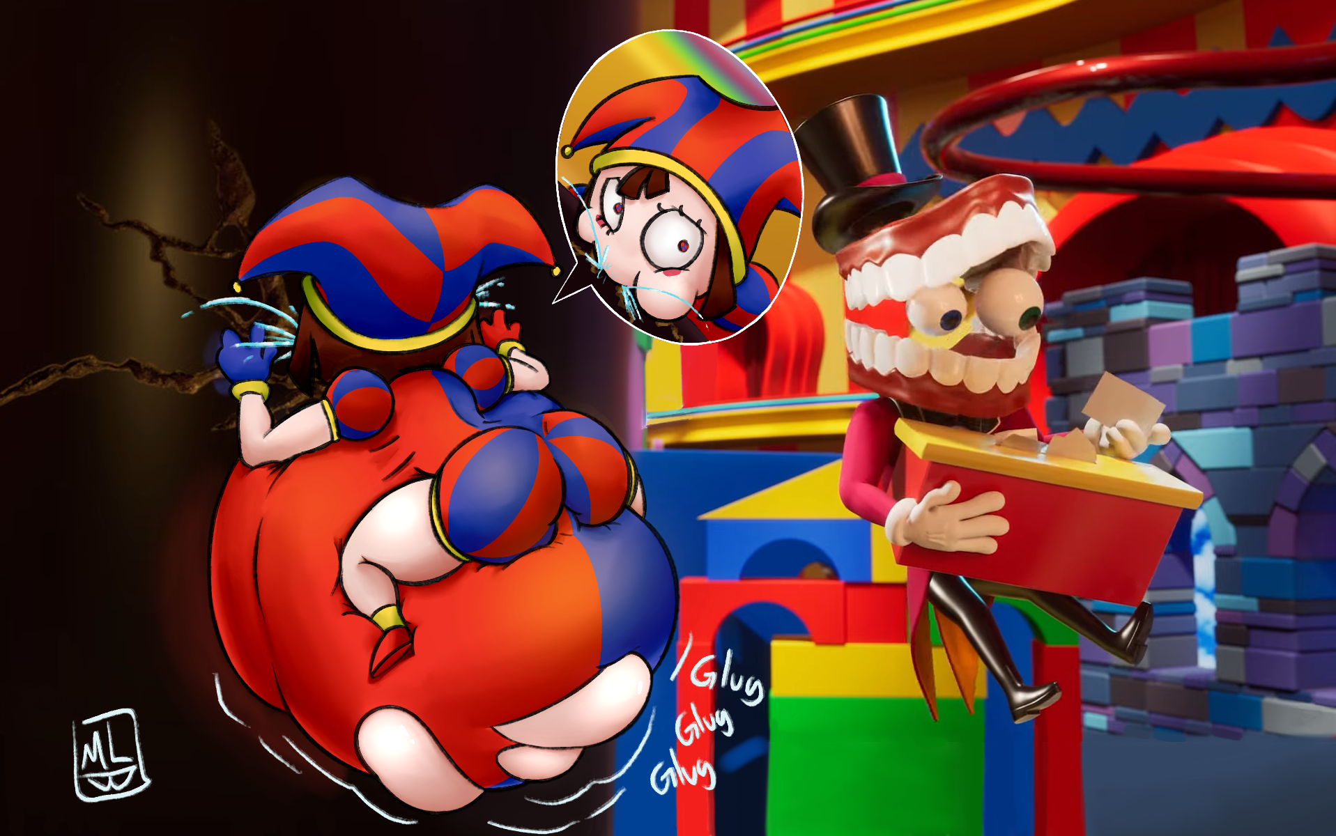Jax seems to be enjoying what is happening, with Ragatha and Zooble swelling all over the chocolate puddle below and where they fell in. Inside, ragatha is wondering what's going on amidst the laughter of Jax, who seems to be enjoying the moment as the doll swells more and more. Zooble, on the other hand, simply disregards everything that's going on wondering various things, with Gangle watching her in a bit of surprise.