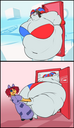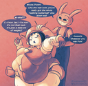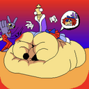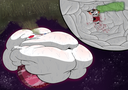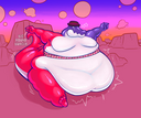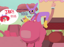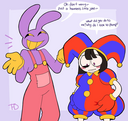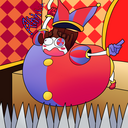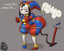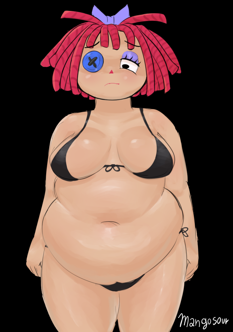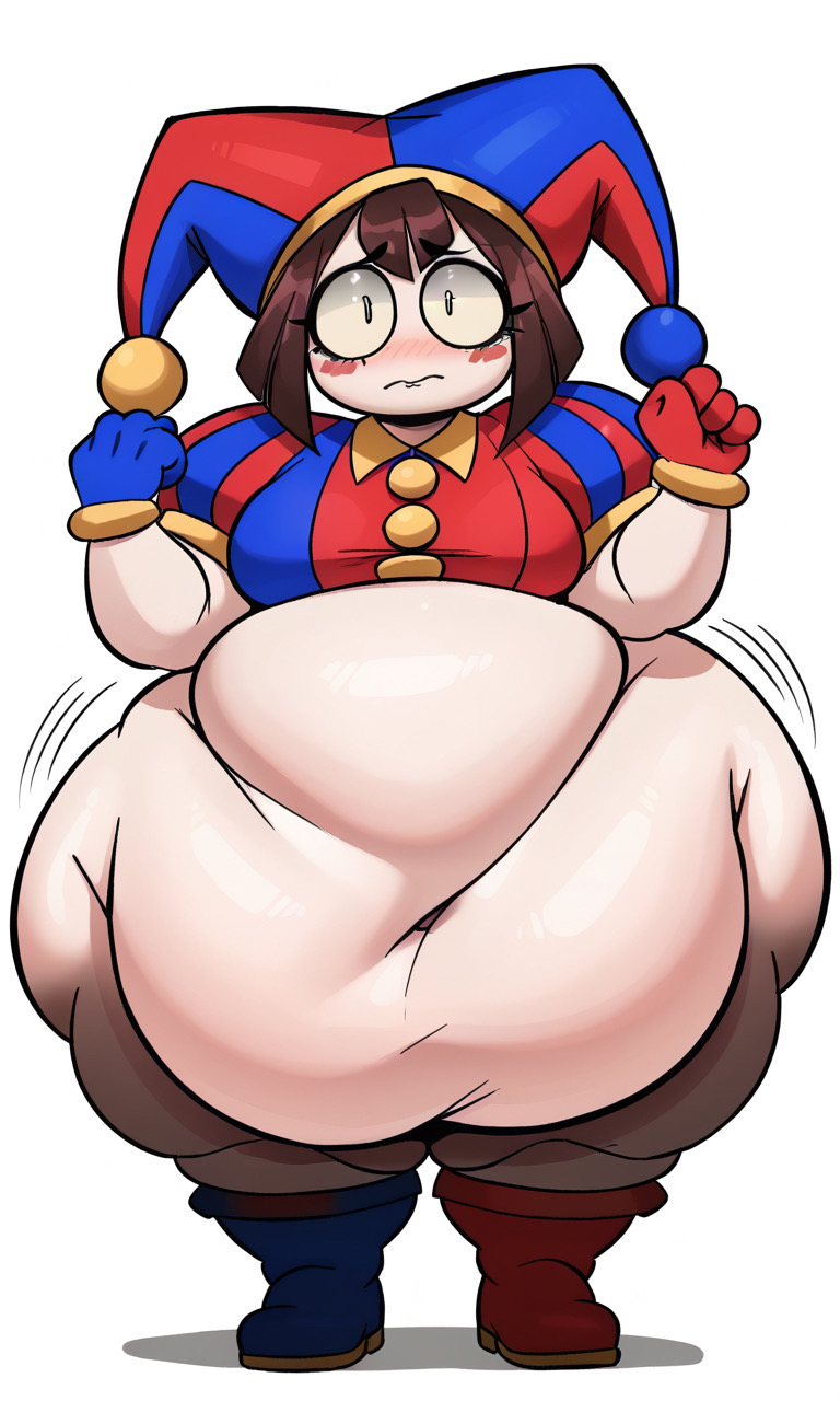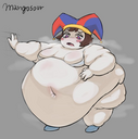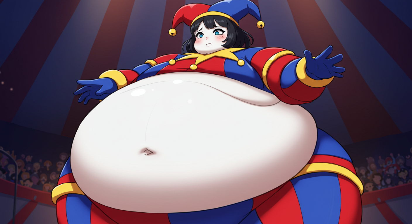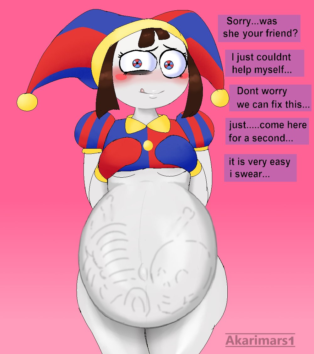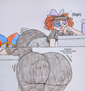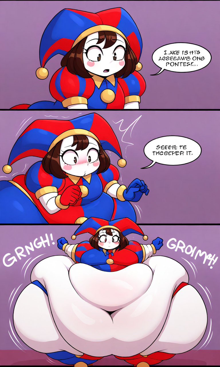 Jax seems to be enjoying what is happening, with Ragatha and Zooble swelling all over the chocolate puddle below and where they fell in. Inside, ragatha is wondering what's going on amidst the laughter of Jax, who seems to be enjoying the moment as the doll swells more and more. Zooble, on the other hand, simply disregards everything that's going on wondering various things, with Gangle watching her in a bit of surprise.