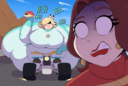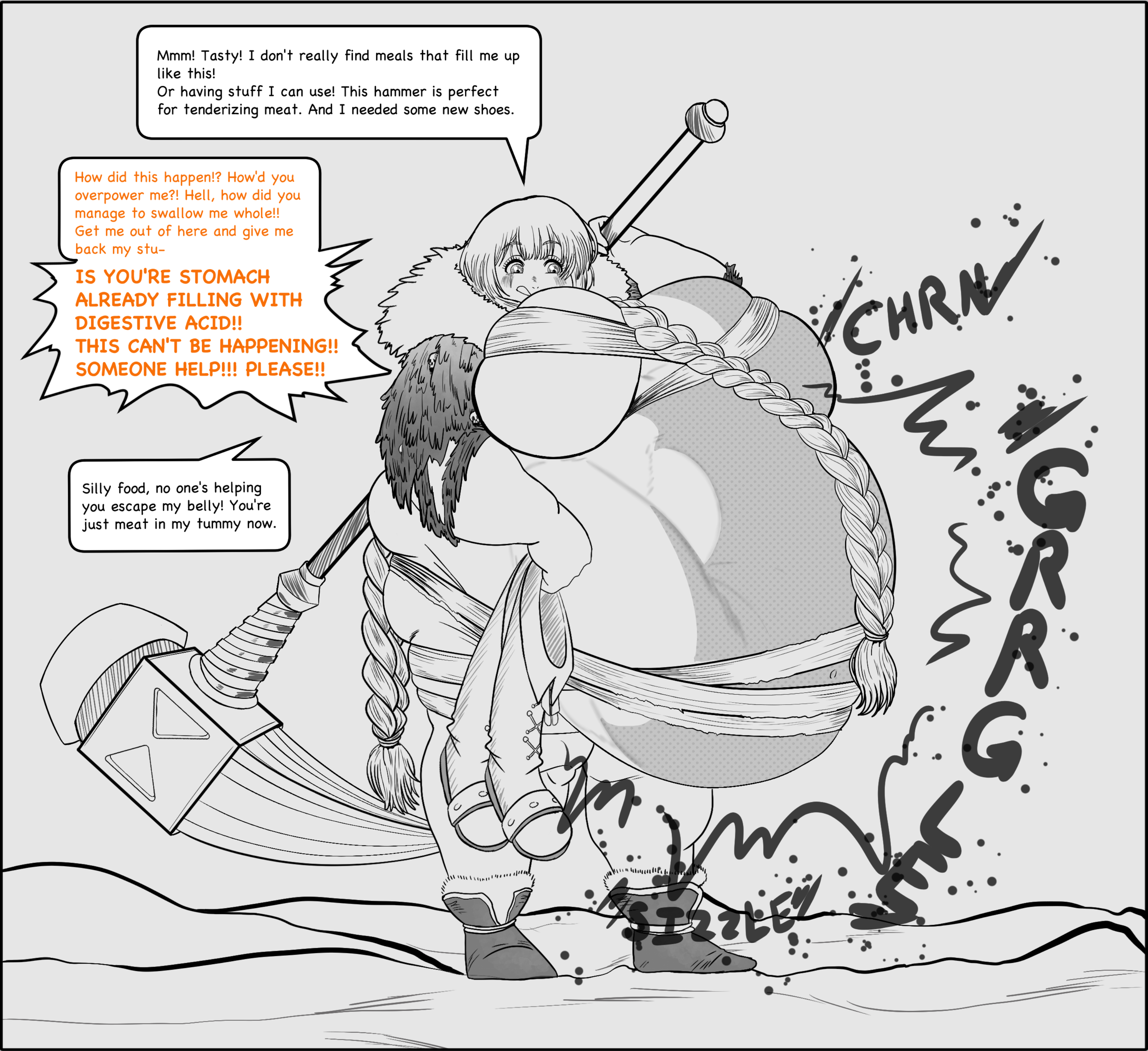 There's two characters in it, Cala Maria and some tanned blonde chick wearing glasses and they're in a swimming pool. Cala Maria is stuffing the blonde chick and herself fat, then willingly crawls down her throat, trapping the blonde chick in the pool until nightfall when she's digested enough to move.