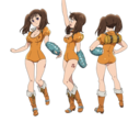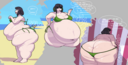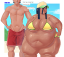The art style is very colorful, and the tanned chick was wearing either a purple or green swimsuit. The sequence itself was between four and seven parts. She was the artist's favored OC, and I think her name was also Maria, since I remember that sequence being called 'Two Marias' or something, but don't take this part as the make-or-break, because it's probably not what I recall correctly.