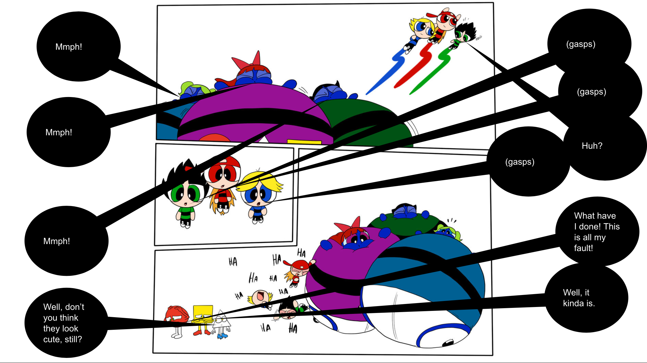 >>87196 I'm going to expand upon this question I asked earlier in the thread. So, among the many weight gain/inflation scenes we've seen in TV shows and movies, which one do you want to see with The Powerpuff Girls? Personally, I would love to see Bubbles absorb gallons upon gallons of root beer and become a giant fat blob, kinda like spongebob in the slumber party episode.
