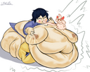 >>99703 my fault lol, i was browsing baqua7's older works and thinking "damn, I want chichi in this pose" the tongue and the belly growling were my ideas though, I just love big hungry bellies so much <3