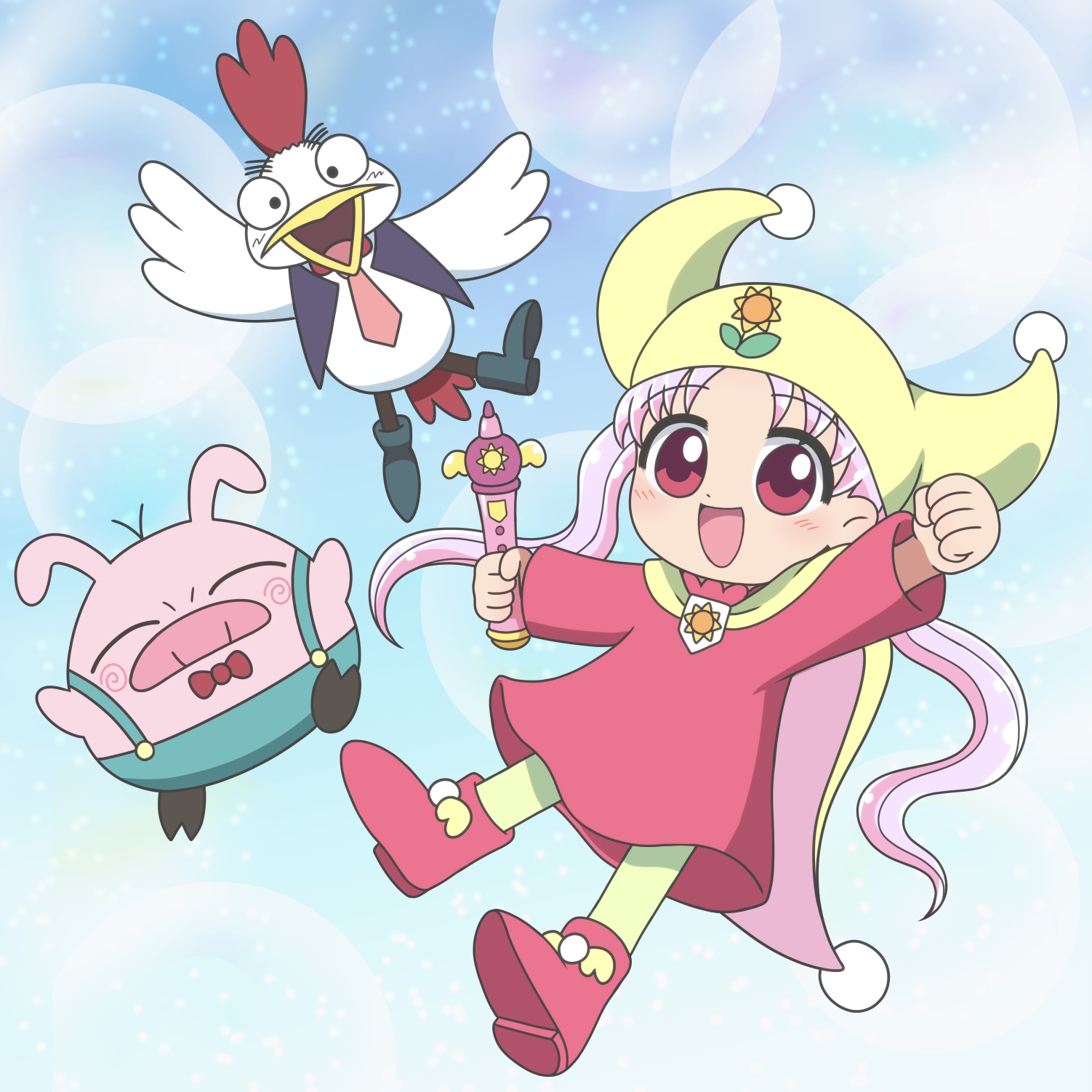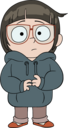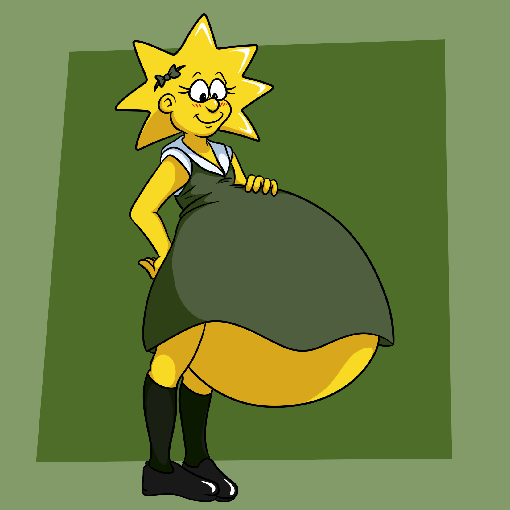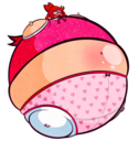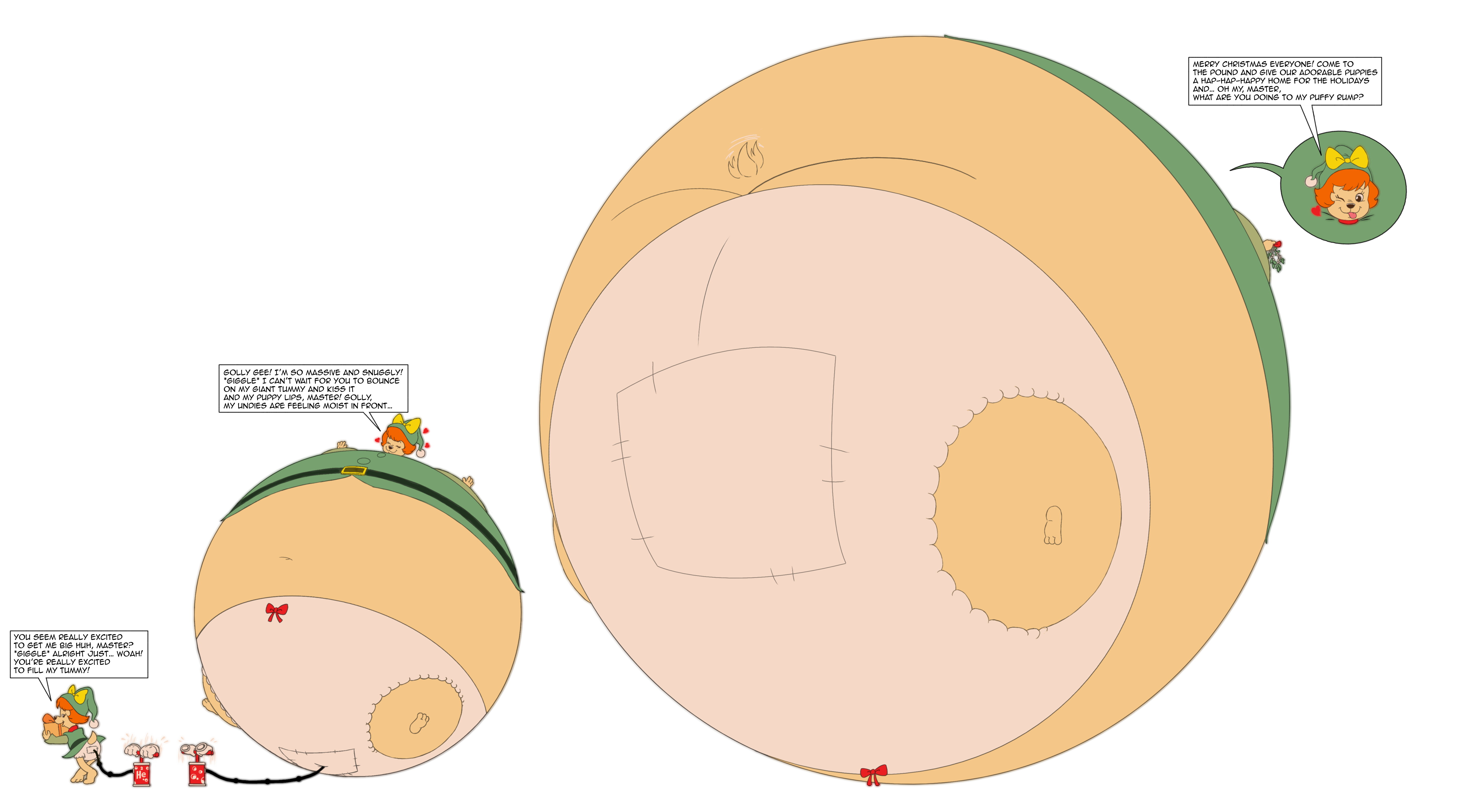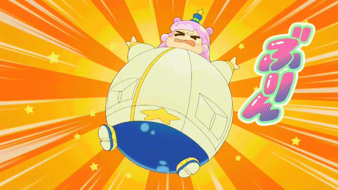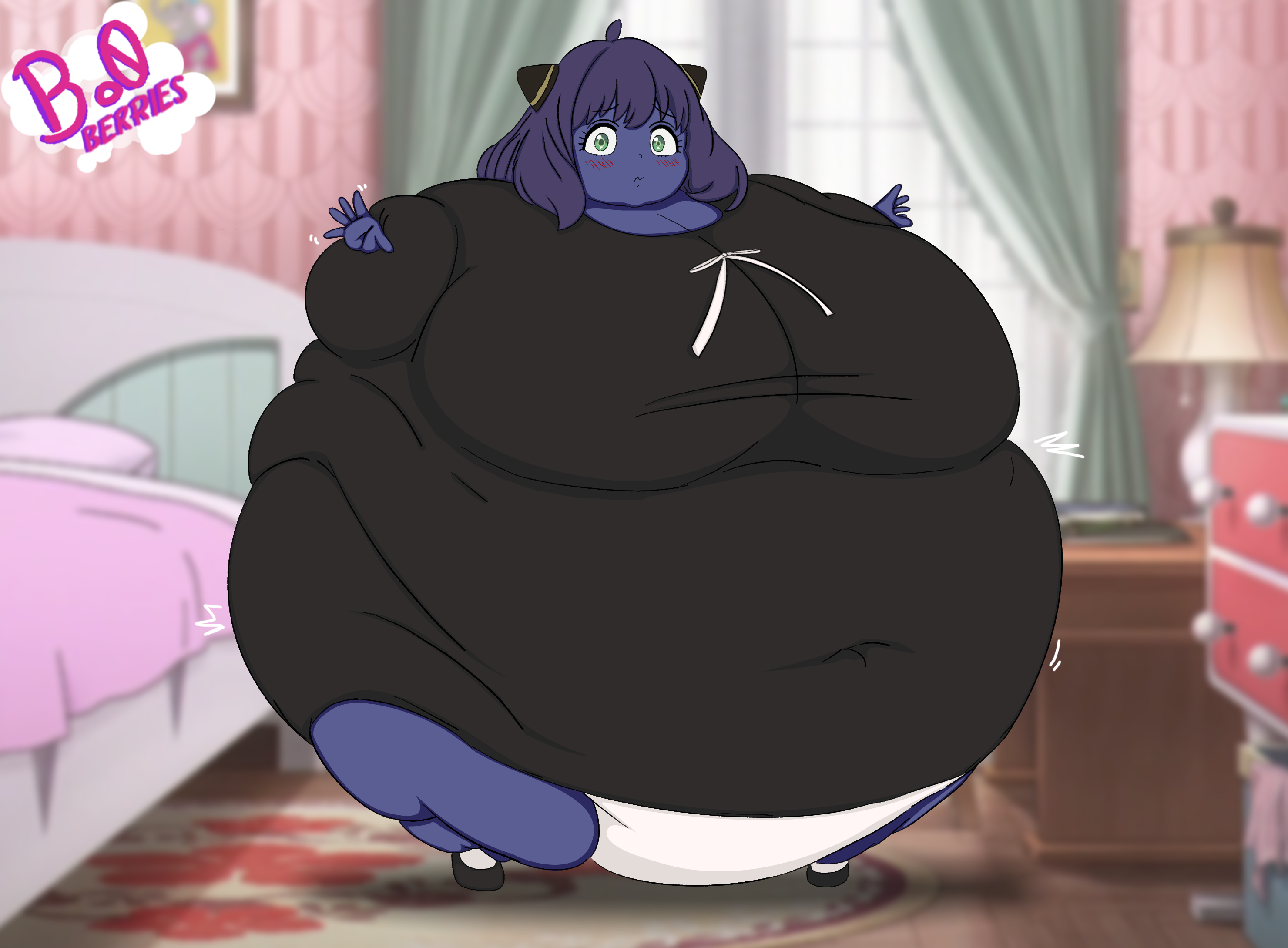 >her bashful cheeks puff up as her overalls and t-shirt start stretching to accommodate her growth