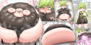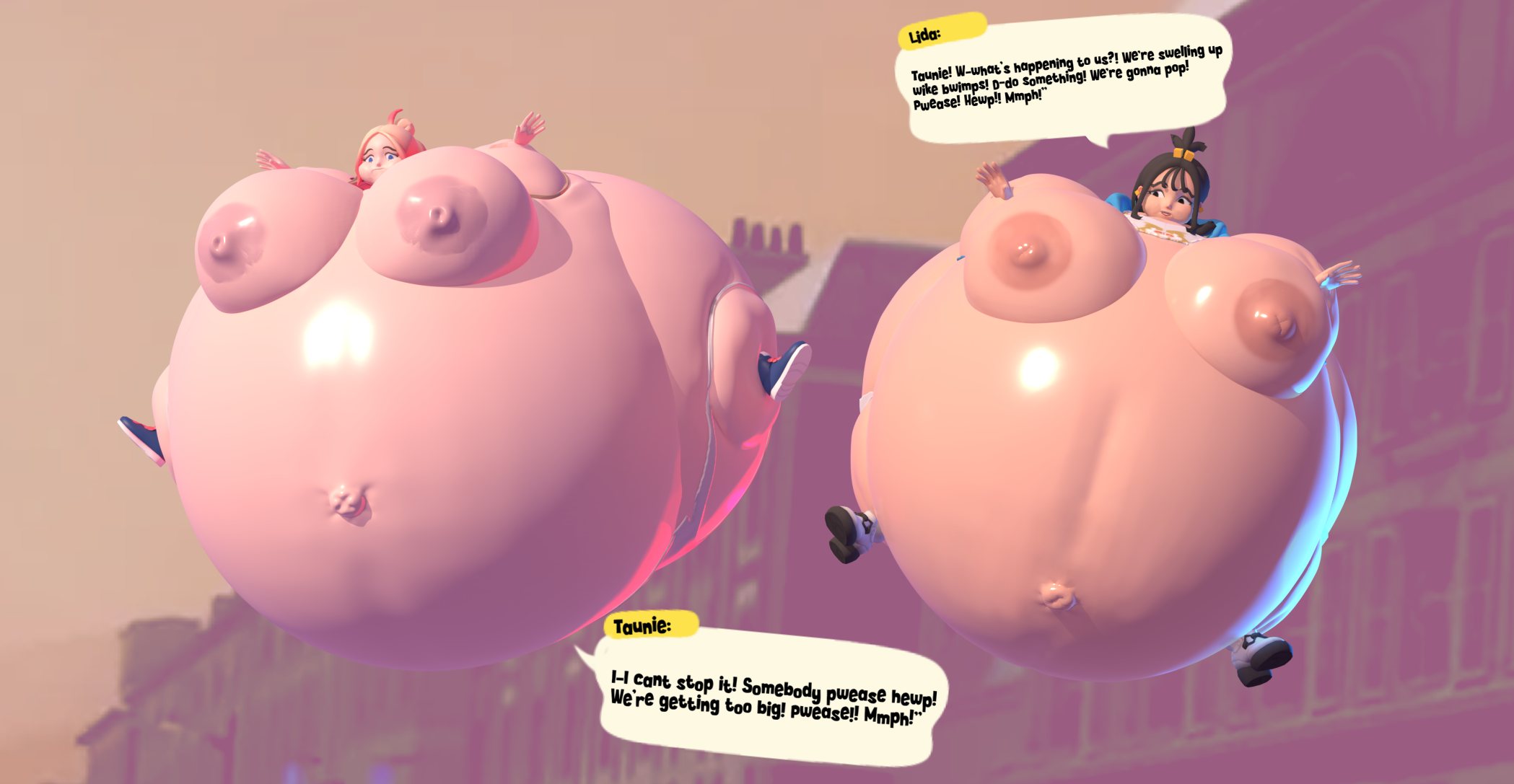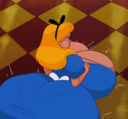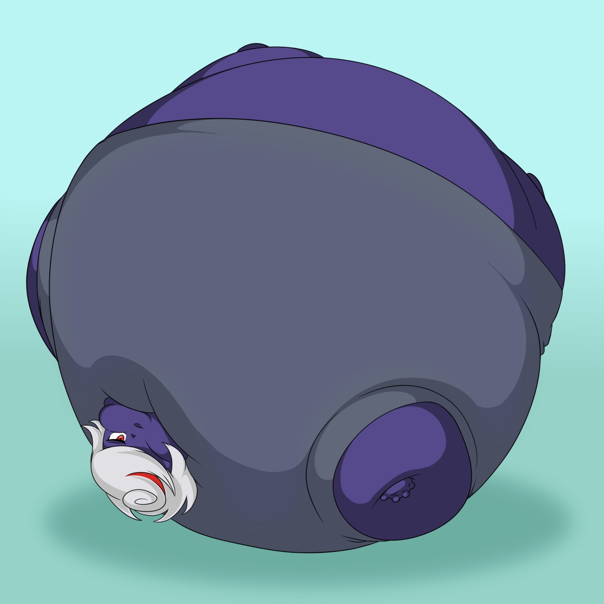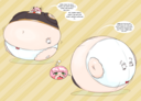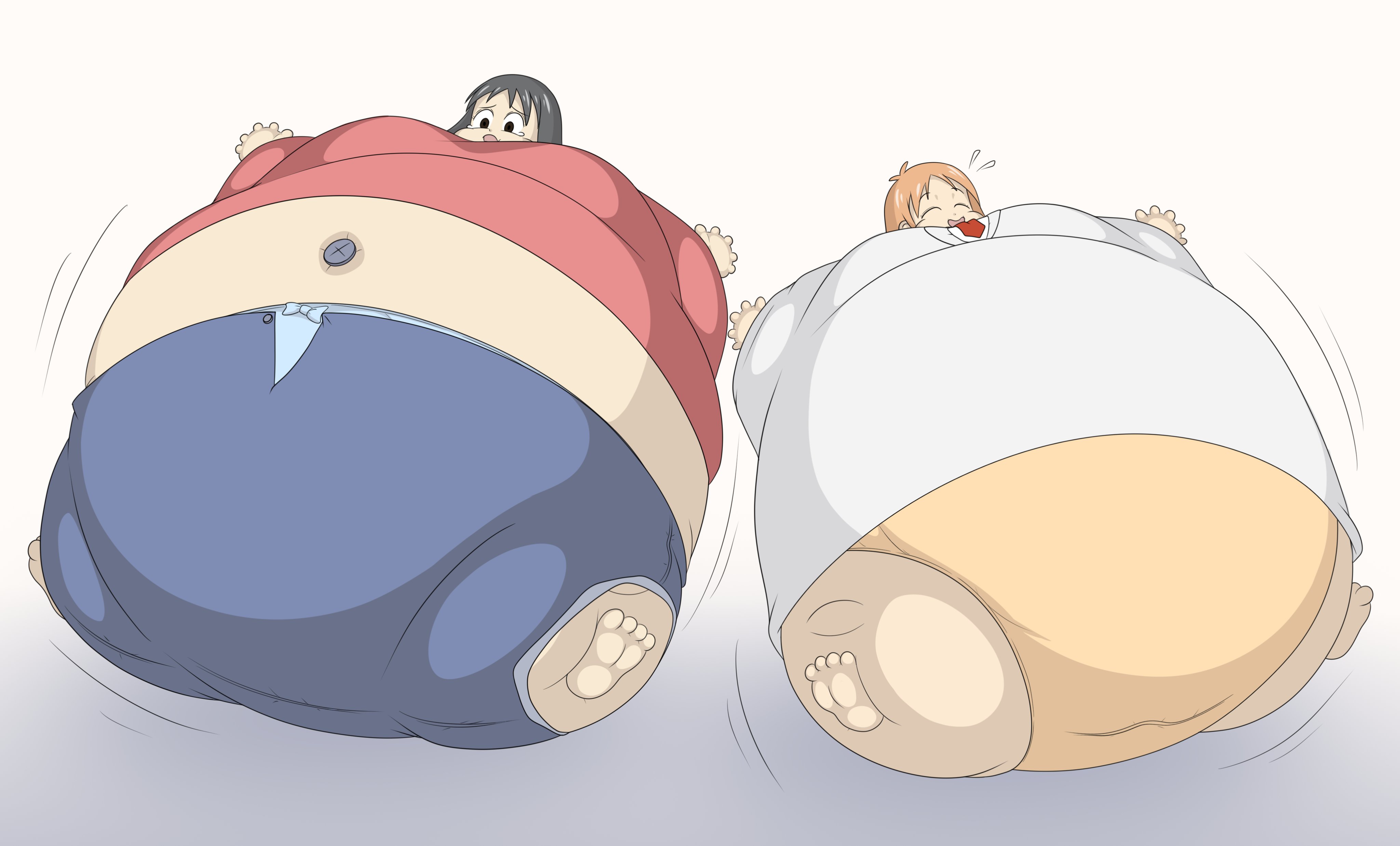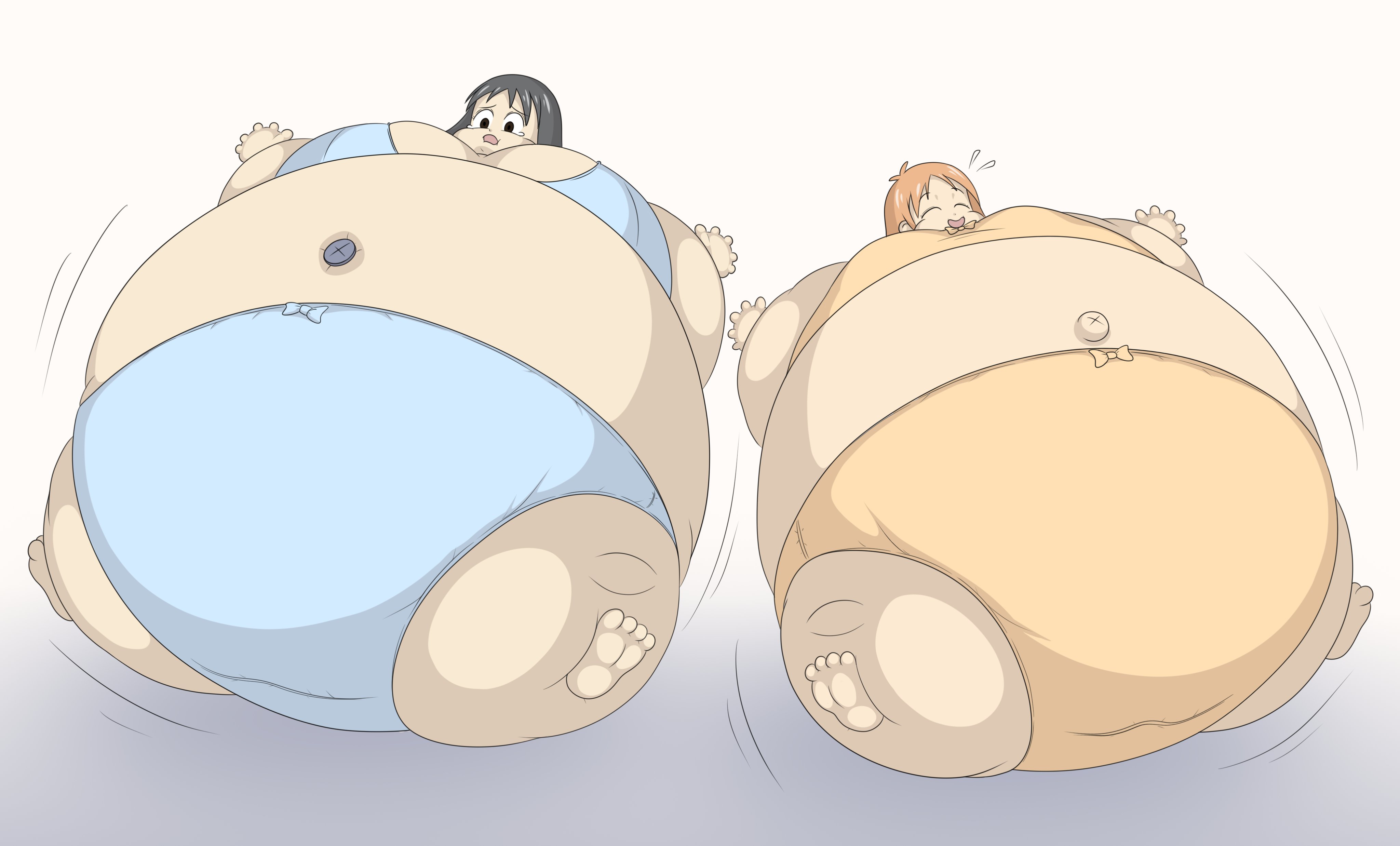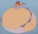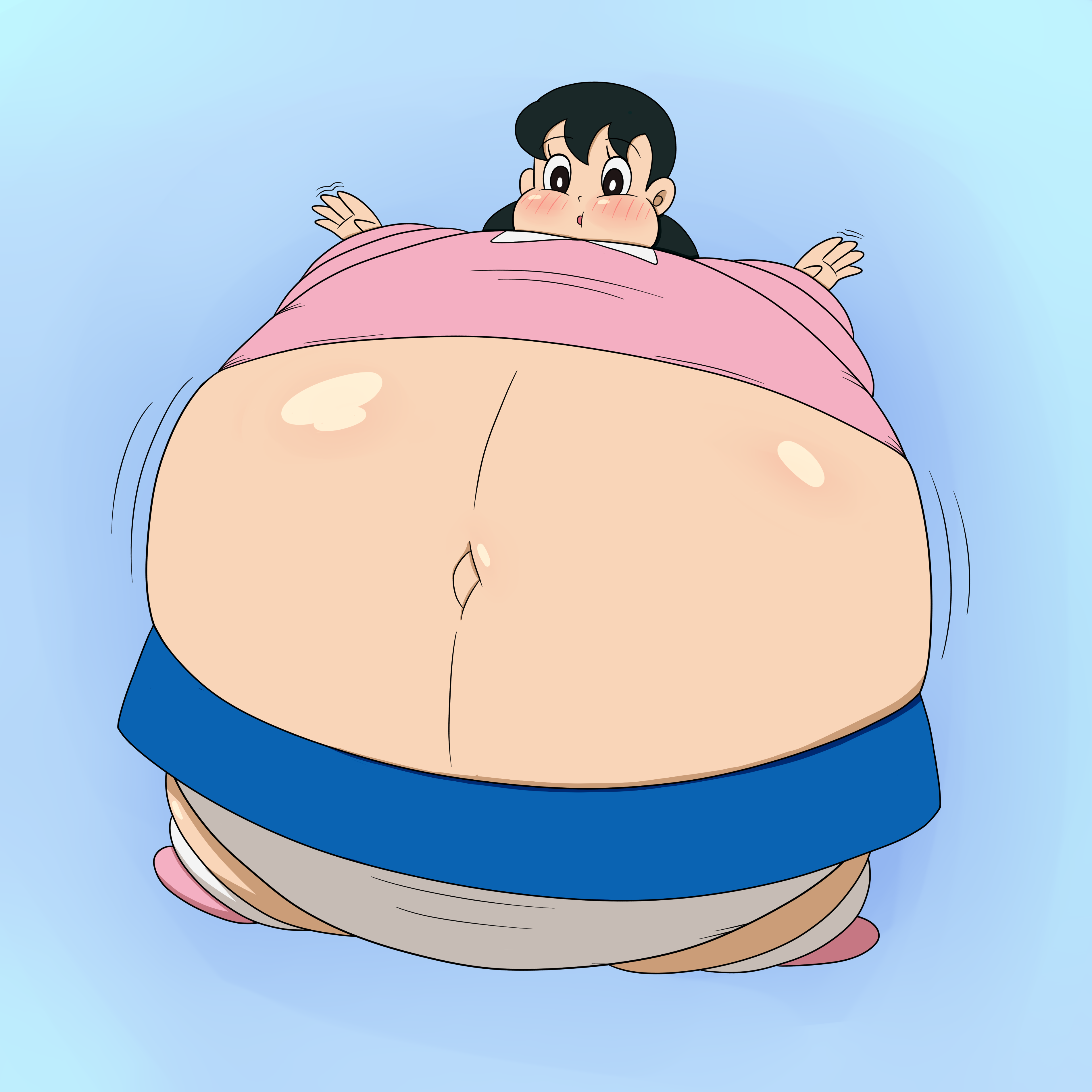 >she uselessly flails her hands and feet while her arms sink into her humongous body,whimpering in embarrassment all the while