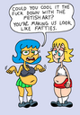 >>98415 They're supposed to be the voice actresses. I think its Hynden Walch on the left and Tara Strong on the right.