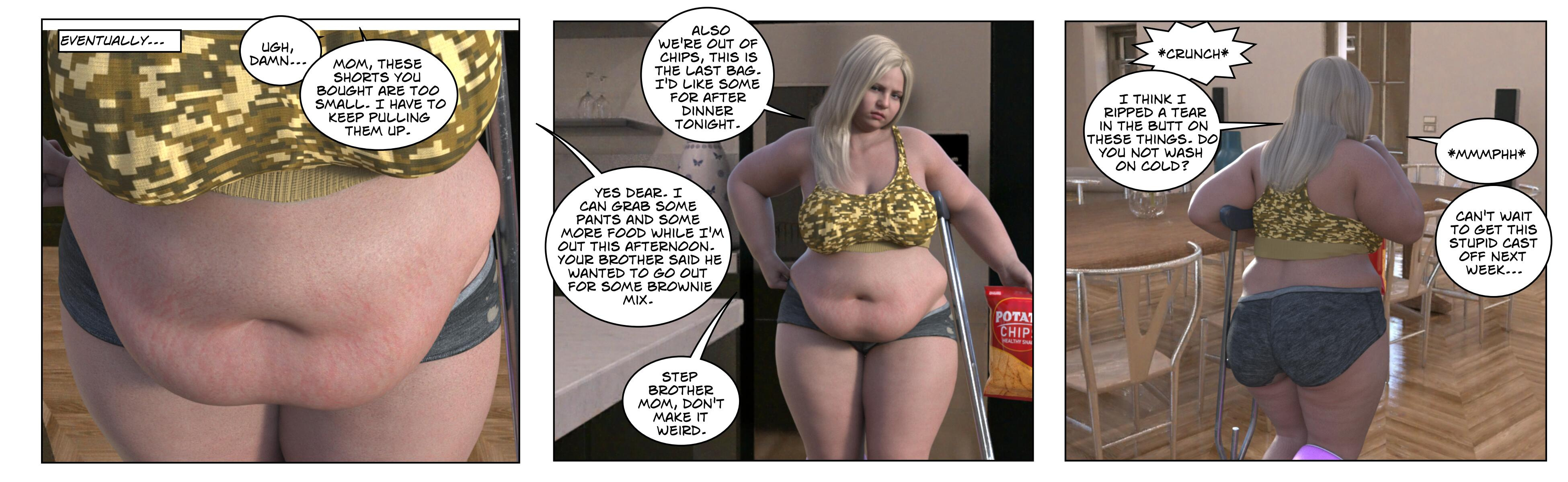 >>297890 It’s nice to actually see a slow and more importantly consistant weight gain. The story hasn’t gone on getting distracted by some crazy side plots and remembers it’s a fetish comic first and foremost. Kayla’s weight gain hasn’t been massive, but she’s been getting good angles and actually showing off her gains while not rushing through them. It’s nice to see the chubby stage actually presant for longer than a page at most. Makes it hotter being able to dwell on it. Honestly my only real grip is that I wouldn’t mind seeing a bit more going into the pages again like when it first started. However it’s either this or scd taking more time with the pages or a break once in awhile. Like you said too, it’s hard to get pissed off about the speed of this one when you do have another short comic running alongside it with far quicker gratification for fat babes getting fatter.