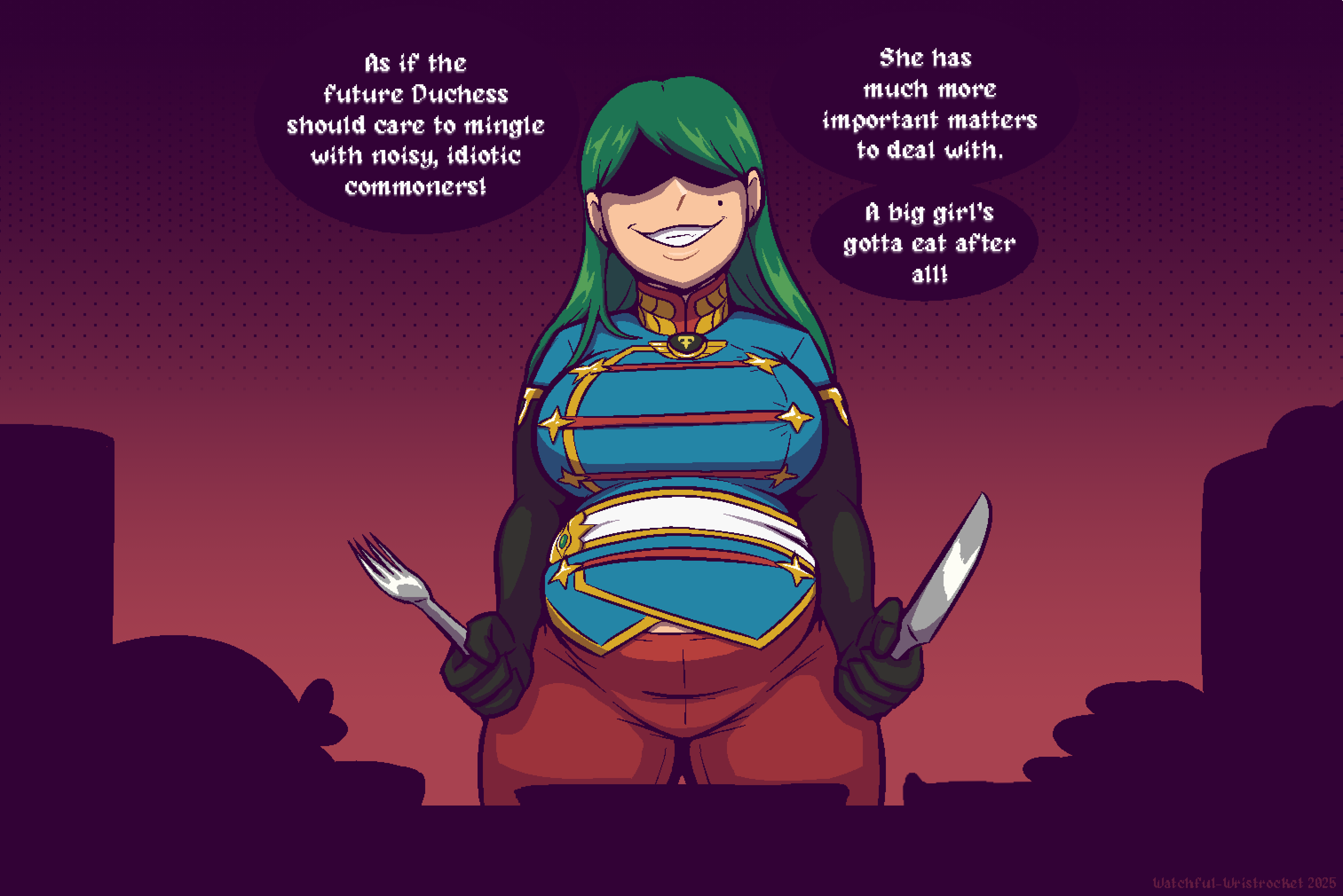 post powerful women (usually rich, goddesses, or monarchs) using their power and influence to eat and gain weight