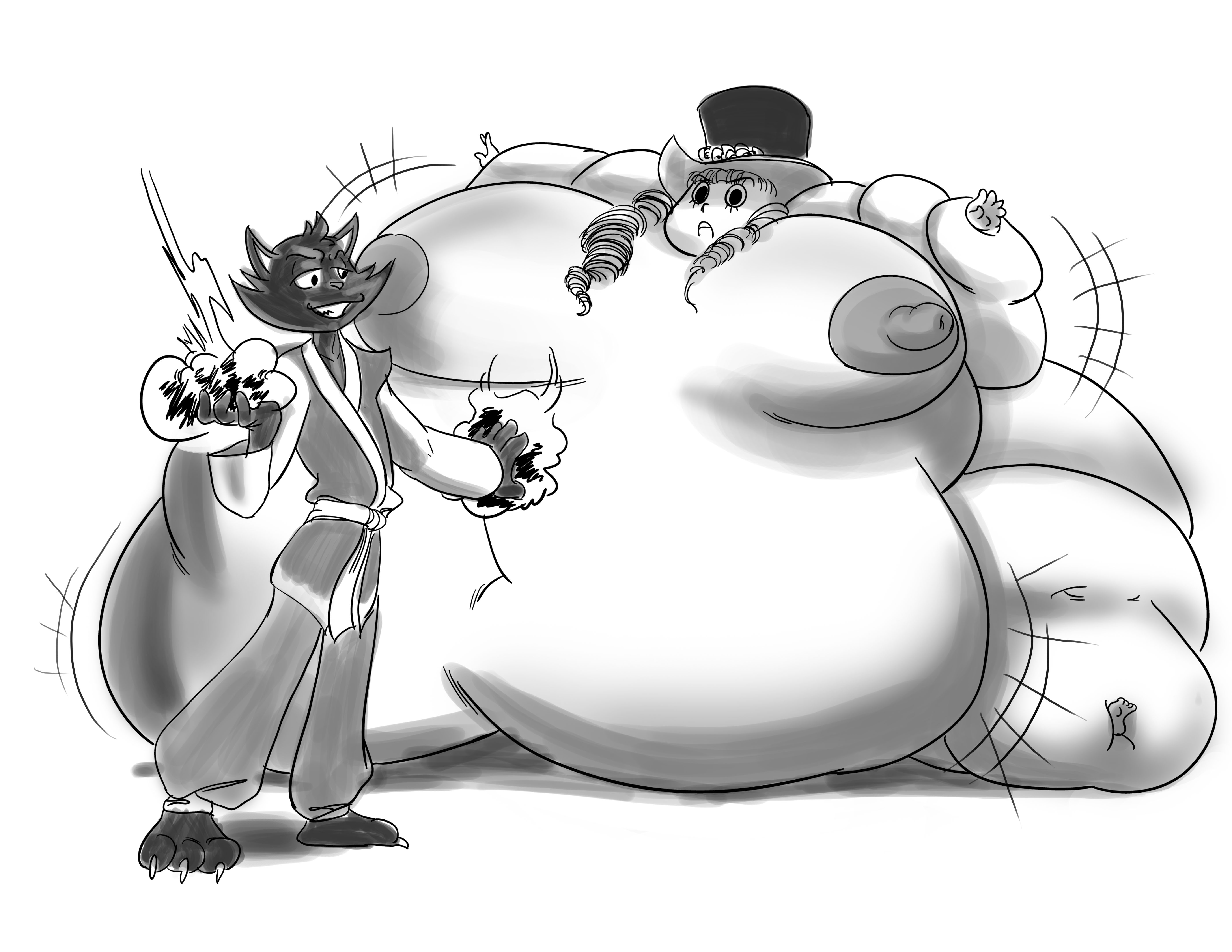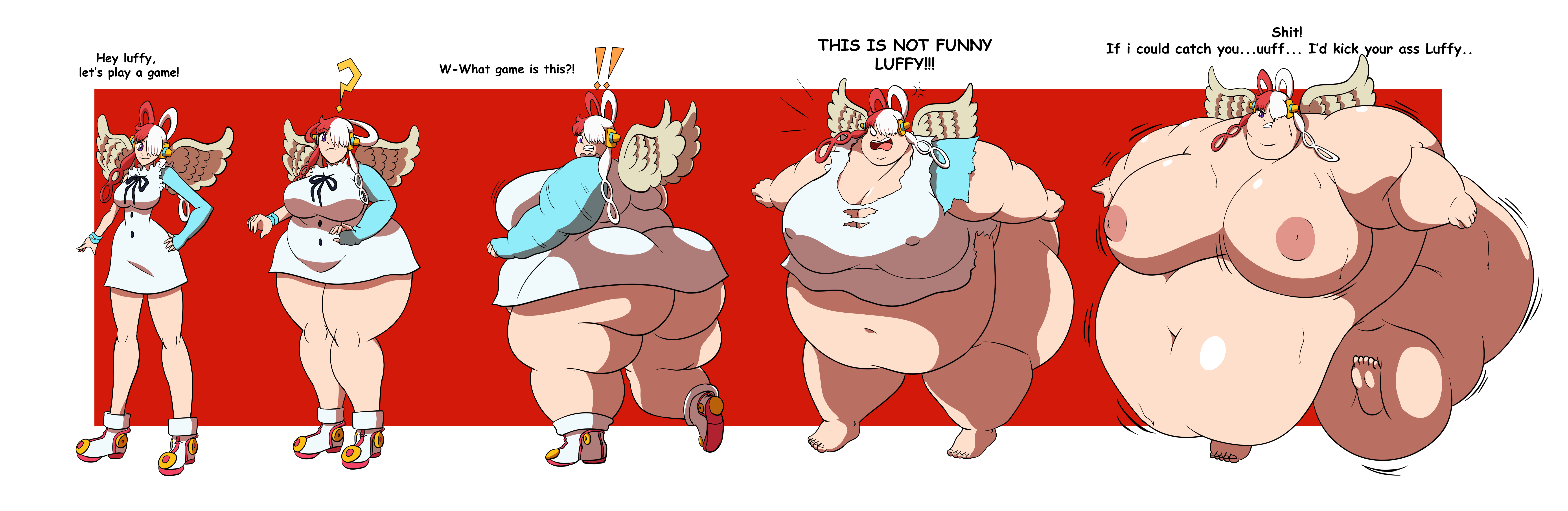 We get 4 panels of the red head customer in the first 23 pages, who is used as an example of a customer who is "losing control", and we get a handful of belly shots of Cassie eating, at this point it seems like the ground work is there for the stuffing and gaining to happen right?