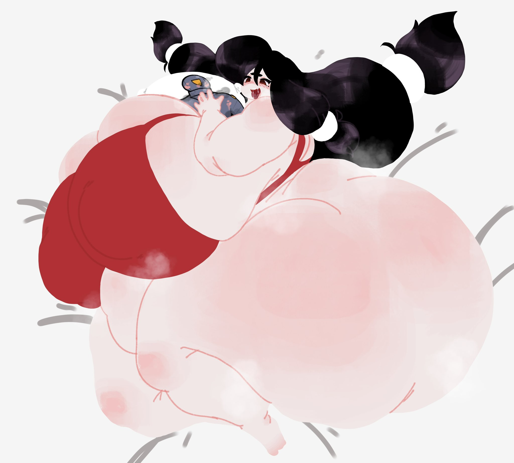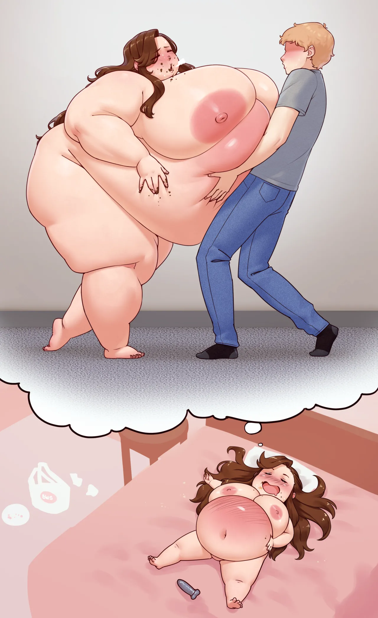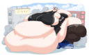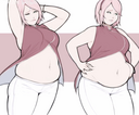 Anybody have any good images of girls trying (and failing) to conceal their gain with shapewear or tight clothes? It's one of my favorite scenarios, but there seems to be little art of it out there.