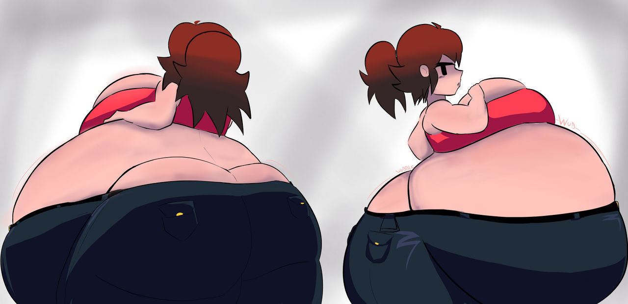 Because I have already commissioned a wg sequence with an ace attorney character (Bonny de Famme from Superspoe). And I don't like just commissioning the same wg sequence over and over again. I want something to make each different and I felt like uneven weight gain, which is not something I see very often.