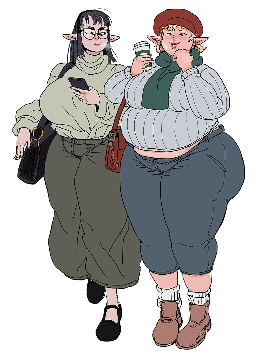 I would love to see more out of this thread, however, I have to recognize that this is a niche preference within an already small community of online fat fetish art. Especially to some extent that being well dressed is contrarian to fat fetish ethos by covering up the belly and the body whole. Very few artists can do both, draw a fat woman in nice, intact clothes while illustrating her still visibly fat. At the very least I can expect next fall to bring artists to draw their characters or their favorites decently bundled in a sweater or jacket.
