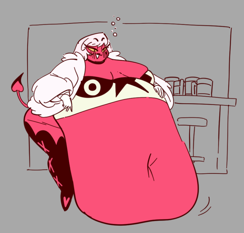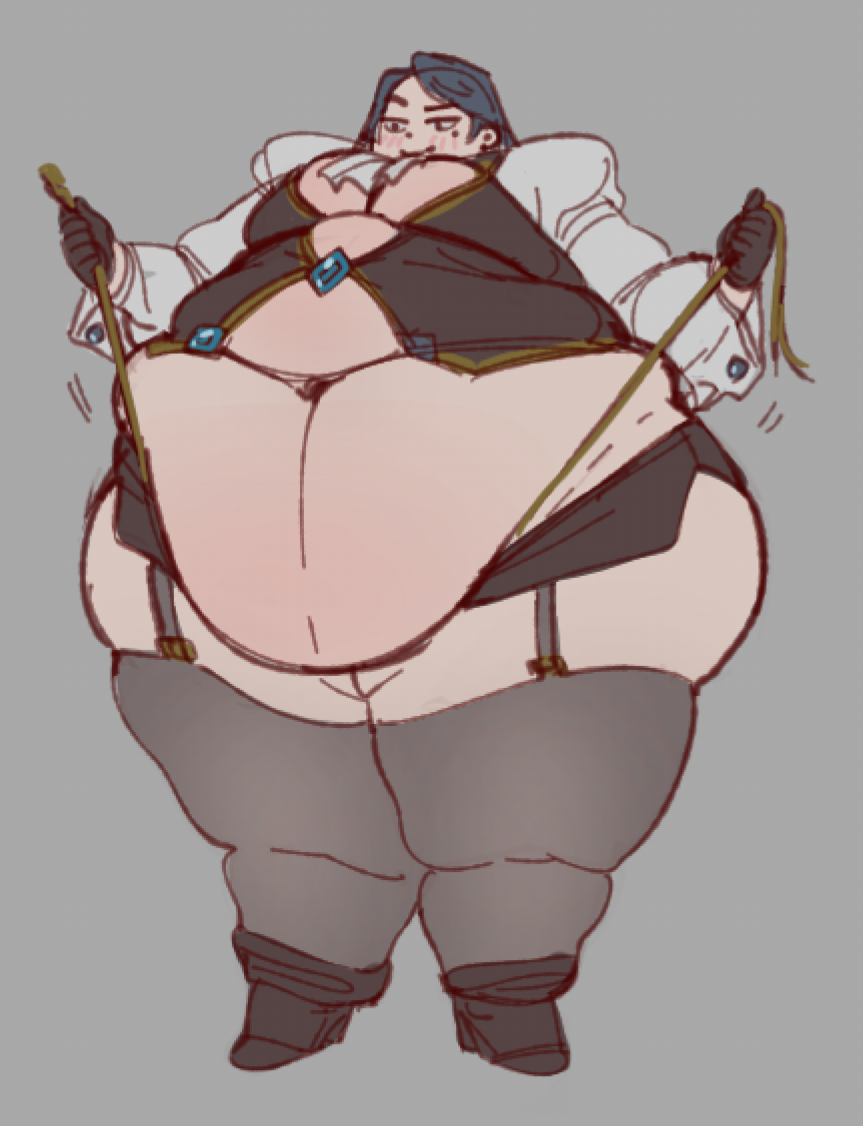 Would anyone mind drawing Verosika the size in this image, clearly buzzed after drinking a run of booze and now as an ultimate beer tank of a gut.