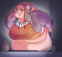 Looking for a certain DDLC BBW image, it's of Monika holding the other 3 girls, all shrunken down and turned into micro-blobs iirc there was a pic of her with a smug face included too, looking at the tubbie tinies she fattened up. Anyone here have it?