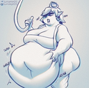 >>285476 It's a pretty good piece, I have some nitpicks but I can always appreciate a woman who's wider than she is tall. Especially with all that blubber surrounding her neck and bloating her cheeks, I like it :3 Do you have any more stuff from this artist? I can't find much on their socials