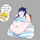 >>270528 Shocking: The character who is known to be a glutton in the show and has had a weight gain scene has more weight gain art than the one who isn't.!