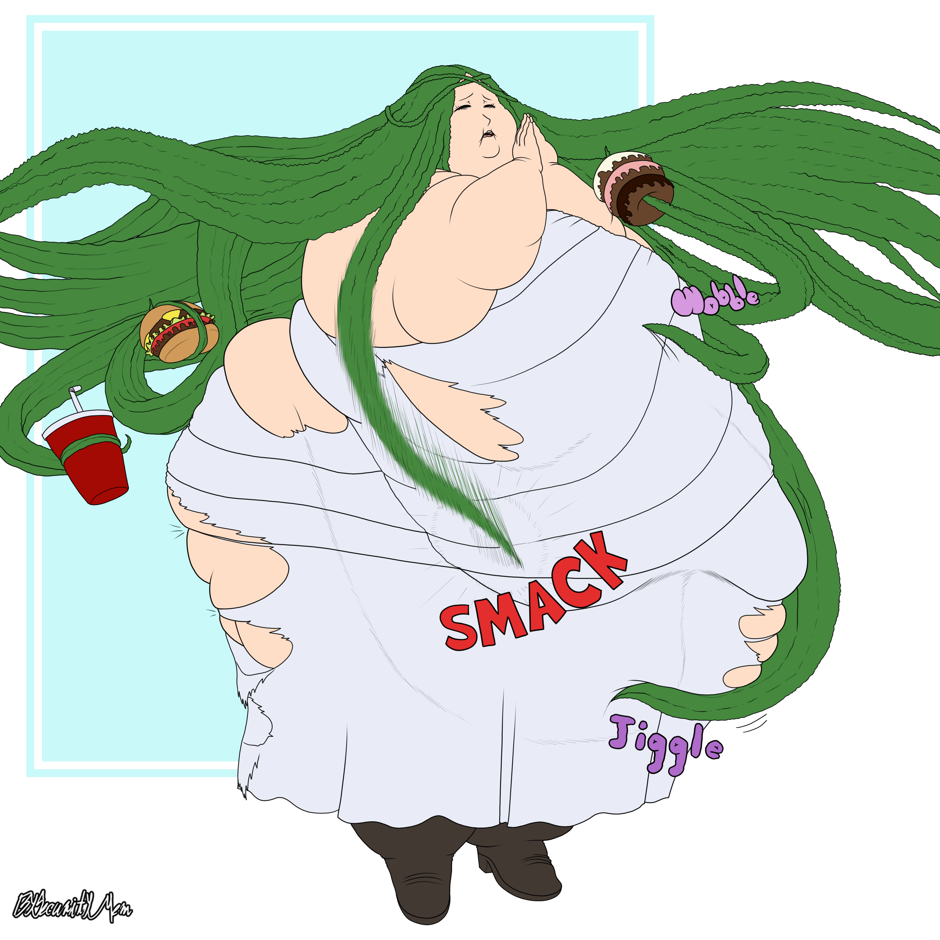 >>281417 Honestly? Same. Would be pretty fitting considering the whole blob theme going on here. That and seeing fat as fuck women like this eating people is hot. Unrelated to that though. God, I know it likely won't happen but I hope that Dark draws Mt Lady as a massive flabby blob someday.