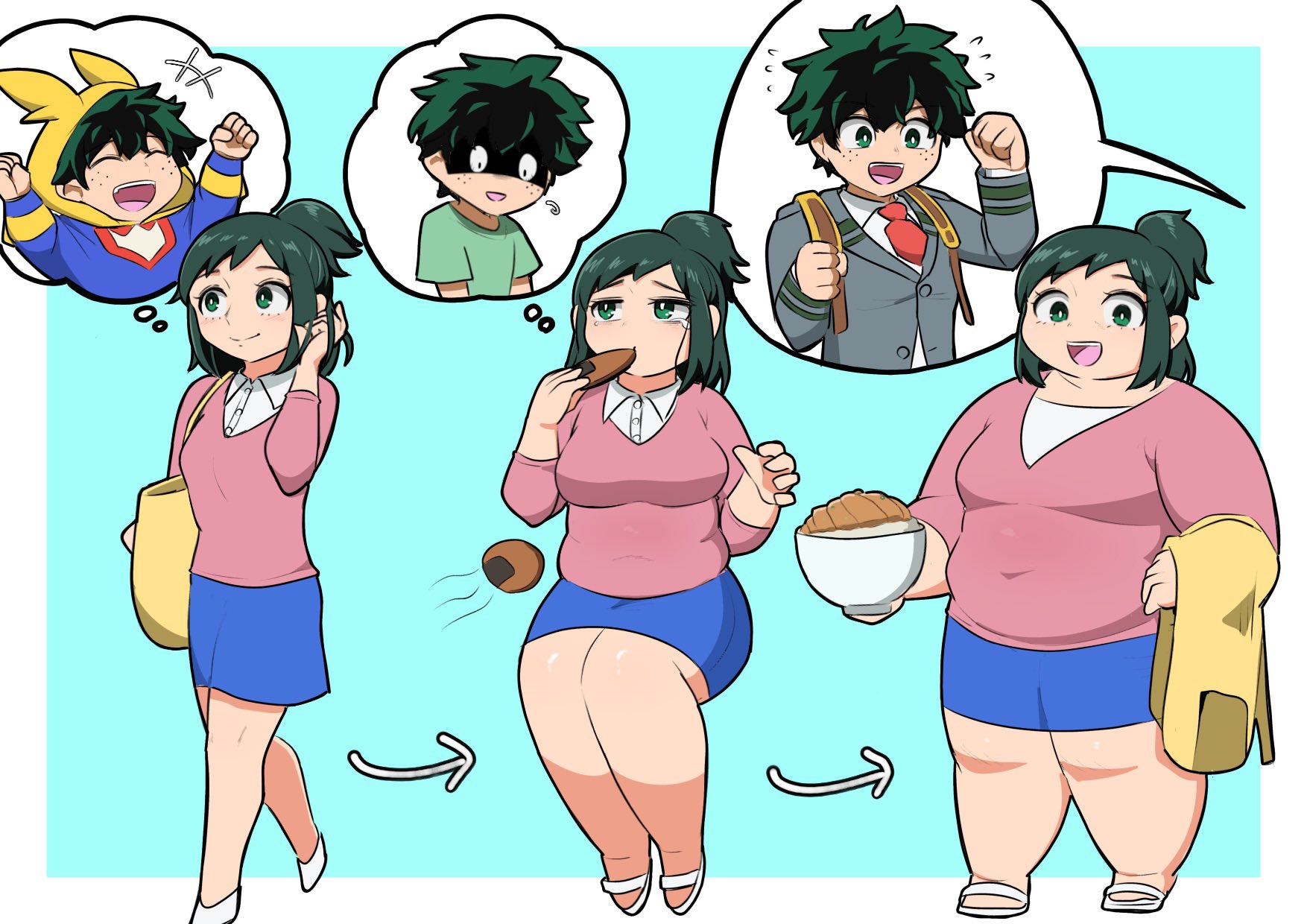 >>287994 Update. I've already got a rough sketch of Momo tryna put on her hero costume. Idk when it will be done tho >>287662 hmmmmmmmmmmm....okey I'll draw her fatso next after I'm done with some other sketches first.....and then the momo.... Also, if you got a specific situation, pose, etc. anything at all, just let me know before I start to sketch her eventually