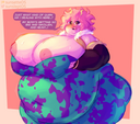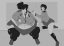 >>287260 Hey really cool! I love the extra super-hero-y situation and style, like the exxagerated sound effect. The tub of lard hero looks very sexy in green that's for sure. Only suggestion I'd say is you could make her huffing an easier colour to read. It's a damn lucky villain that gets to be flattened by that fat frog. May I humbly suggest you try Momo struggling with some weight gain? Thank you.