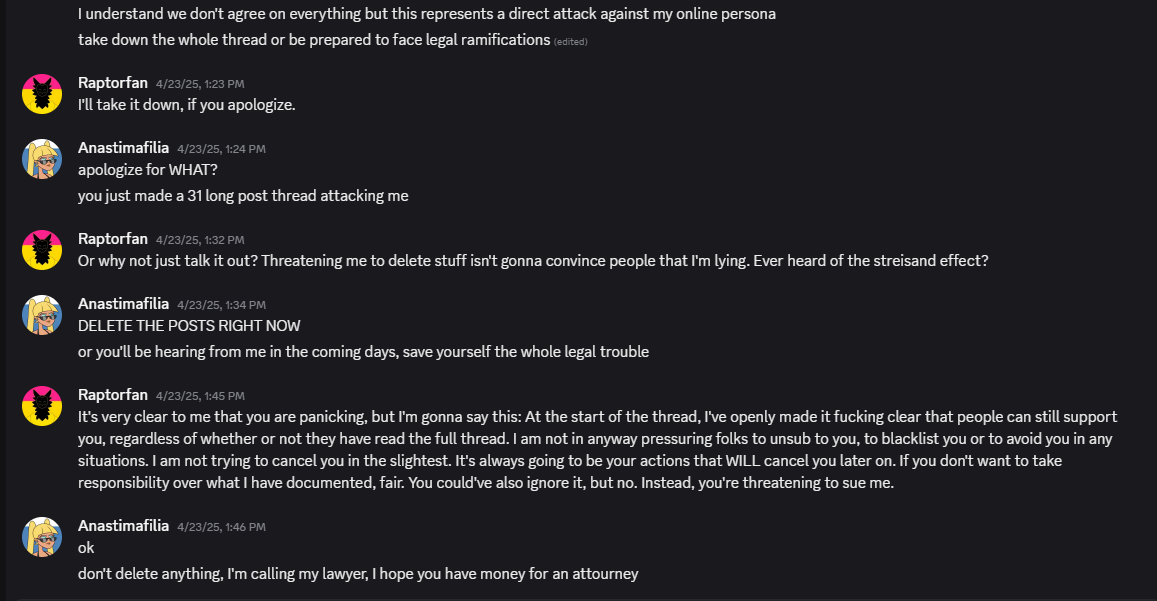 >>296860 While I think both you and anastimafilia are lolcows (moreso for anastimafilia, especially with milking their paywalled game over a 4+ year dev cycle like they're yanderedev), linking the 31 post thread for anyone who cares to get full context https://bsky.app/profile/101alien01.bsky.social/post/3lh2p37wko22y