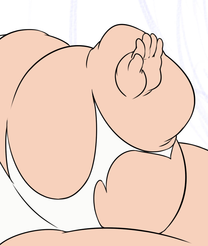 >>296720 And last bit in regards of the legs, fat thighs WILL spread legs apart as long as they keep on getting fatter, and we barely see that with some of your pieces. Now granted, some shots don't need legs (like the Reflections sprites), or when they do, they don't spread in a correct manner. Now granted, the third image I took a clip from is from a male WG pic, but you can still see how the guy's legs spread apart by his flab.