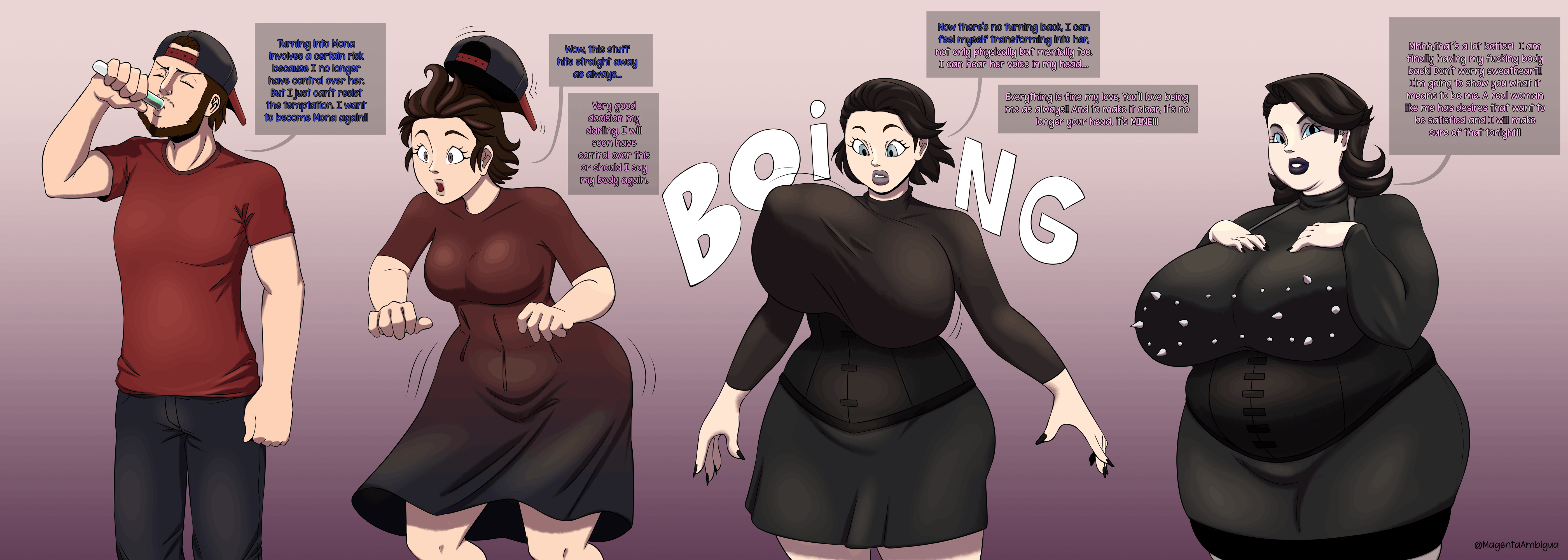 >>296826 I have seen most of youre comics and the only one i really liked was the substitube wanted. I liked it because it showed the characters personality changing to something more gluttonous the bigger she got and i wish that appeared in more comics because from the others that I remember it was either a potion or spell gone wrong and it went by pretty quick.