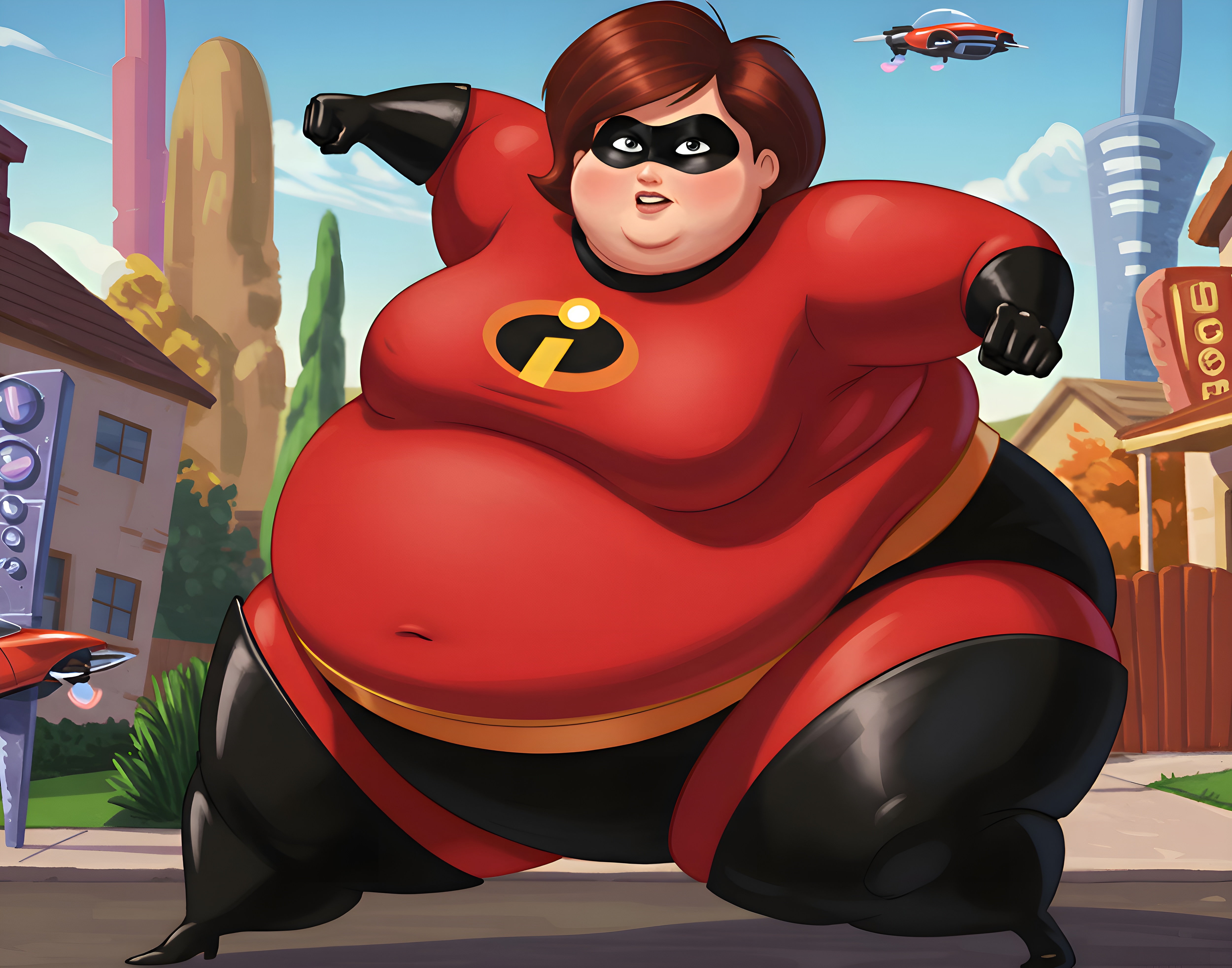 - Redraw this Elastigirl (Spoilers for AI) with the same exact size, proportions, pose and everything (It is not neccesary to give it a background). - For the clothes, make it look tight (similar to image), and don't include any teared/torn clothes. - I would appreciate it if the drawing is done digitally and without coloring. - Also (and optionally, of course) i would appreciate it if a WIP of the image is shared before it is done. Request Anchor: >>279514