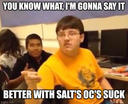 >>285113 >this goddamn thread can't go 5 SECONDS without devolving into STRAIGHT AUTISM. >Op yelling and screaming at a bbwchan with messages that are more likely to be deleted than the criticism towards Salt No self awareness, you love to see it