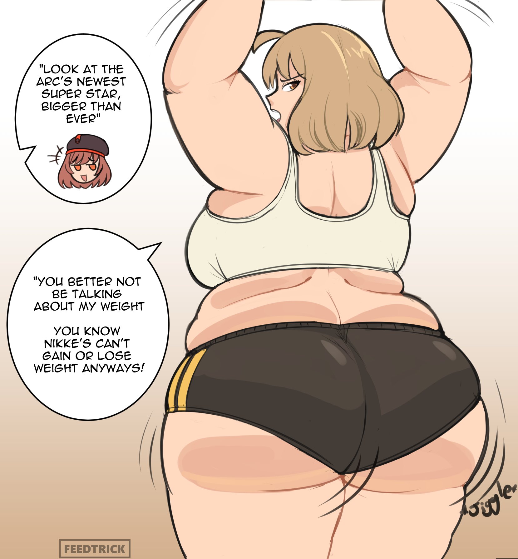 >>291466 Fuck that, she should be much fatter. Let her taste testing consume her so much that she gives up on her preference of not gorging herself, either by a newly developed sense of gluttony or from her having a case of sensory overload that makes her eat much more then she would normally. It's boring how one of the most drawn sizes people do of her is so close to her normal size. Can barely be called fetish art.