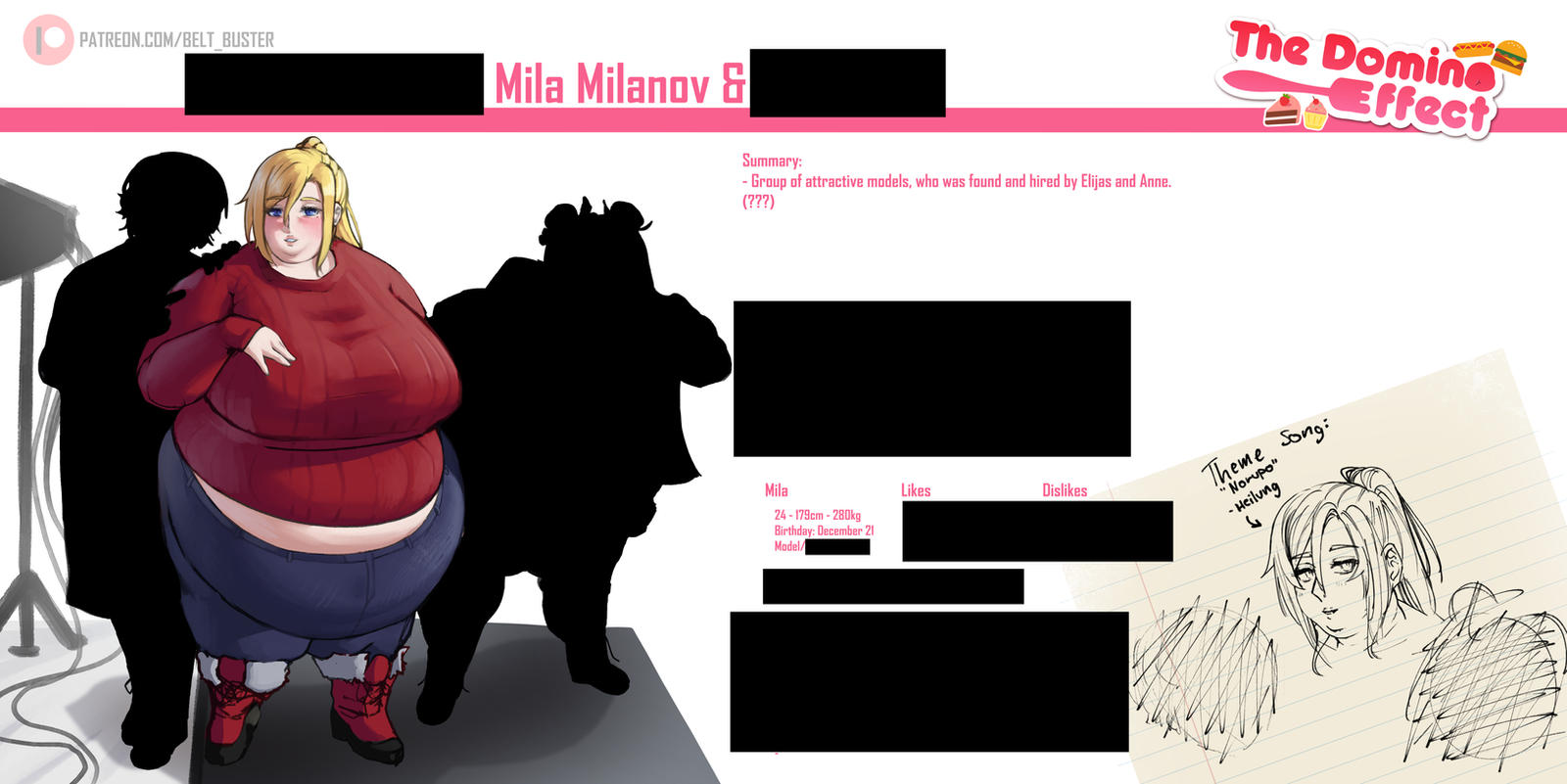 >>291322 >Reading the initial announcement for tde belt did say he wanted to do it forever. However it feels like this weight gain comic, having gone on for 5 years now, has very little weight gain He said in 2024 before the Nina arc that the comic was 60% done. Hard to say how much there's left though >I recognize that such a slow pace isn't my style but I feel like calling it a weight gain comic is a bit generous. Its more of a comic about people eating with the occasional obese woman. Comic had more WG before tbh. Personally I do like slow pacing comics in theory but if you ask me these last few arcs have way too much plot and melodrama when the main interest should be the girls and their weight gain.