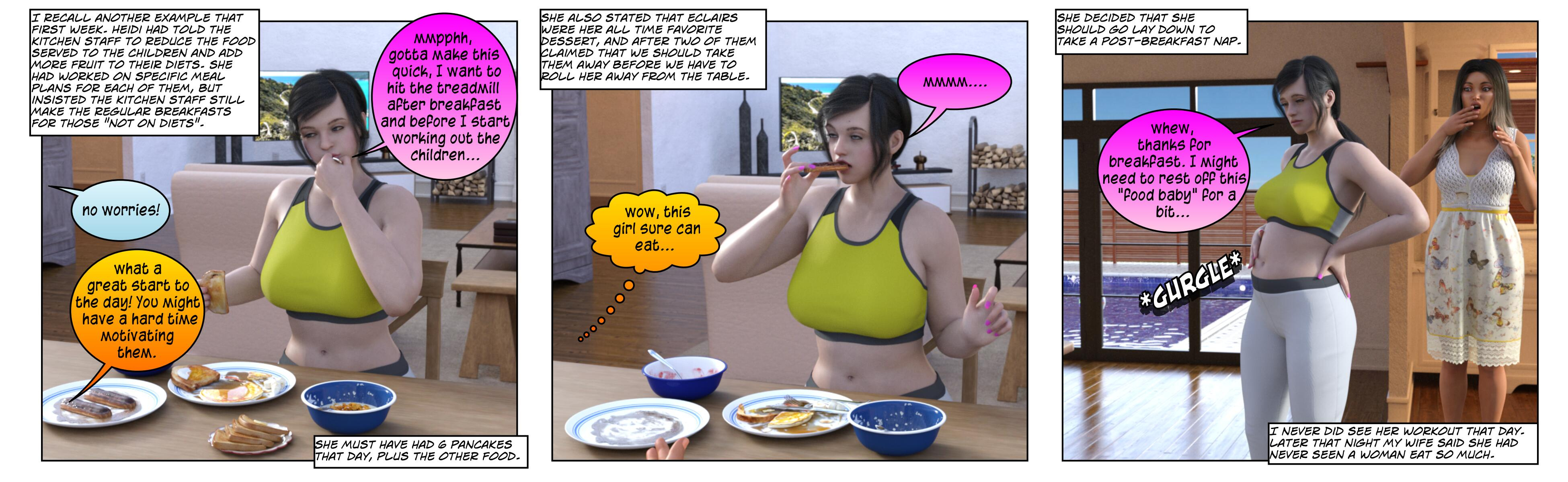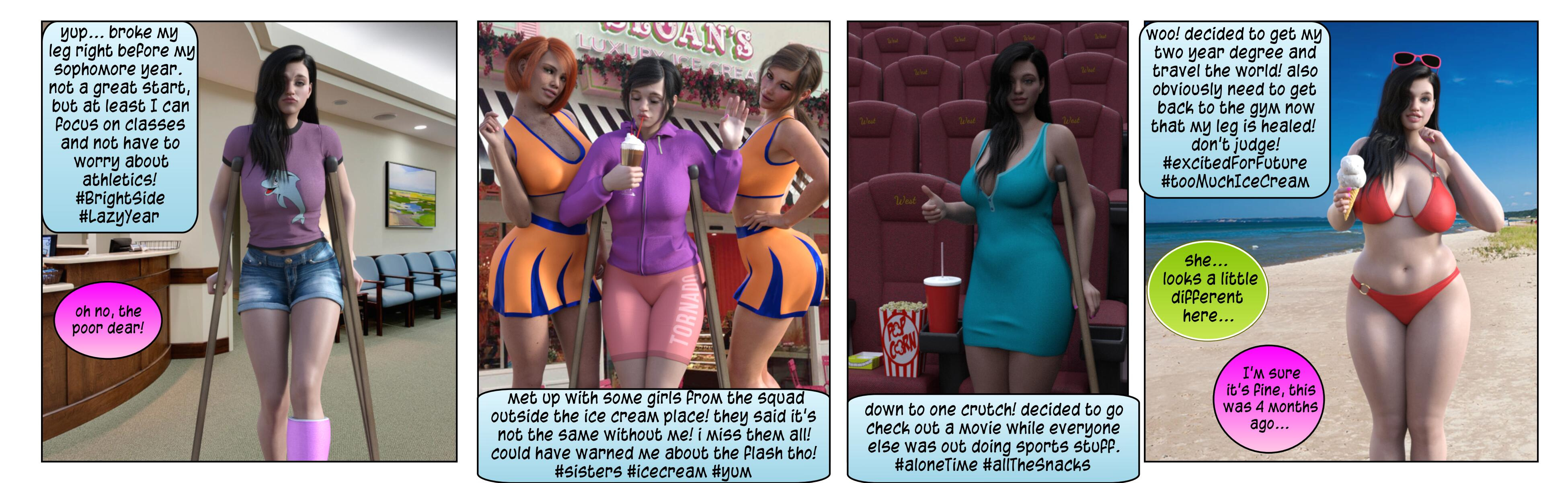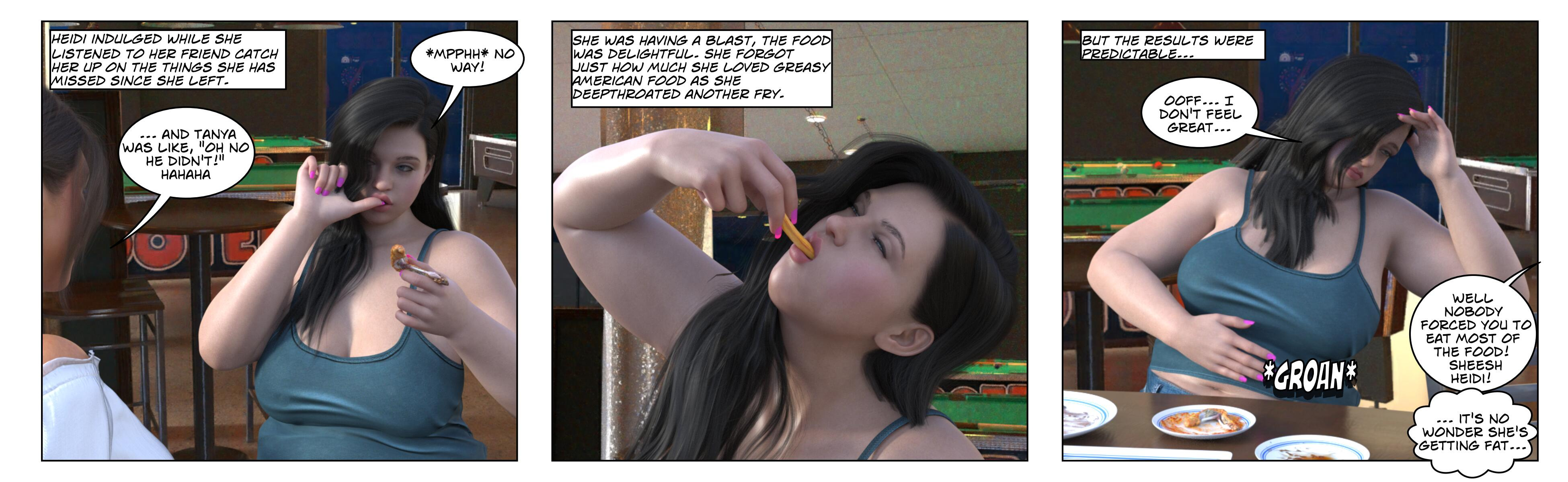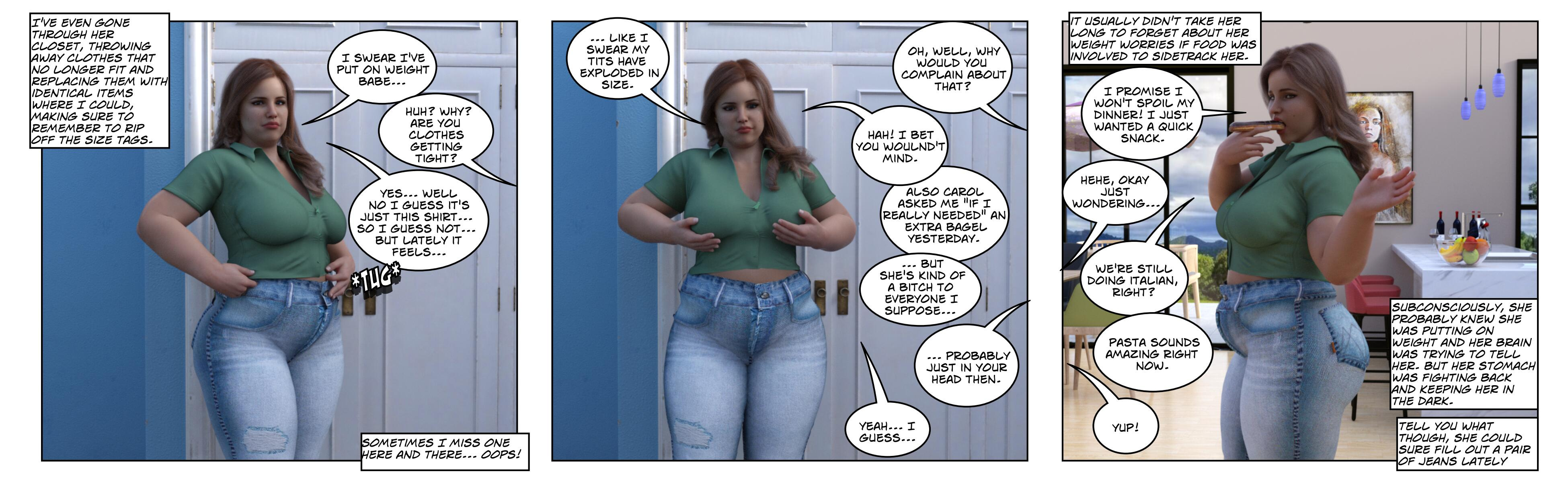 I hate how much text his comics have. Comics are suppose to have just speechbubbles or small notes saying the time and not fucking full paragraphs. The pacing is also shit where the weight is barely noticable until the end where it randomly speeds up and then the character goes from chubby to obese in like 3 of the final pages