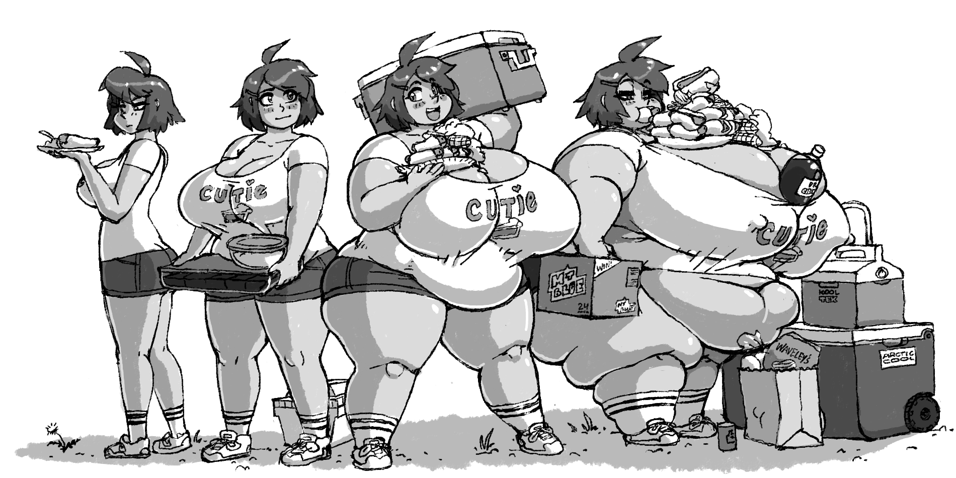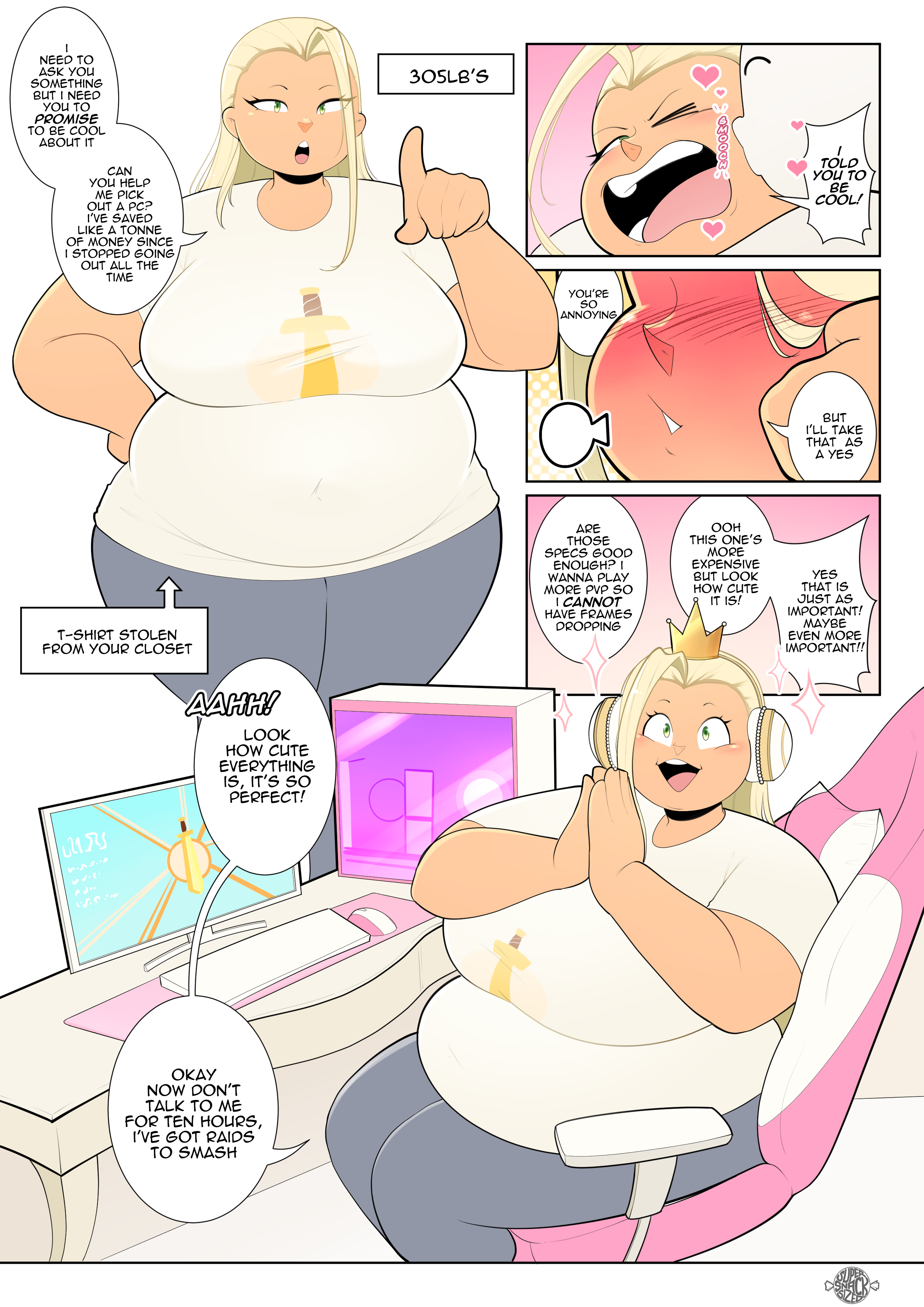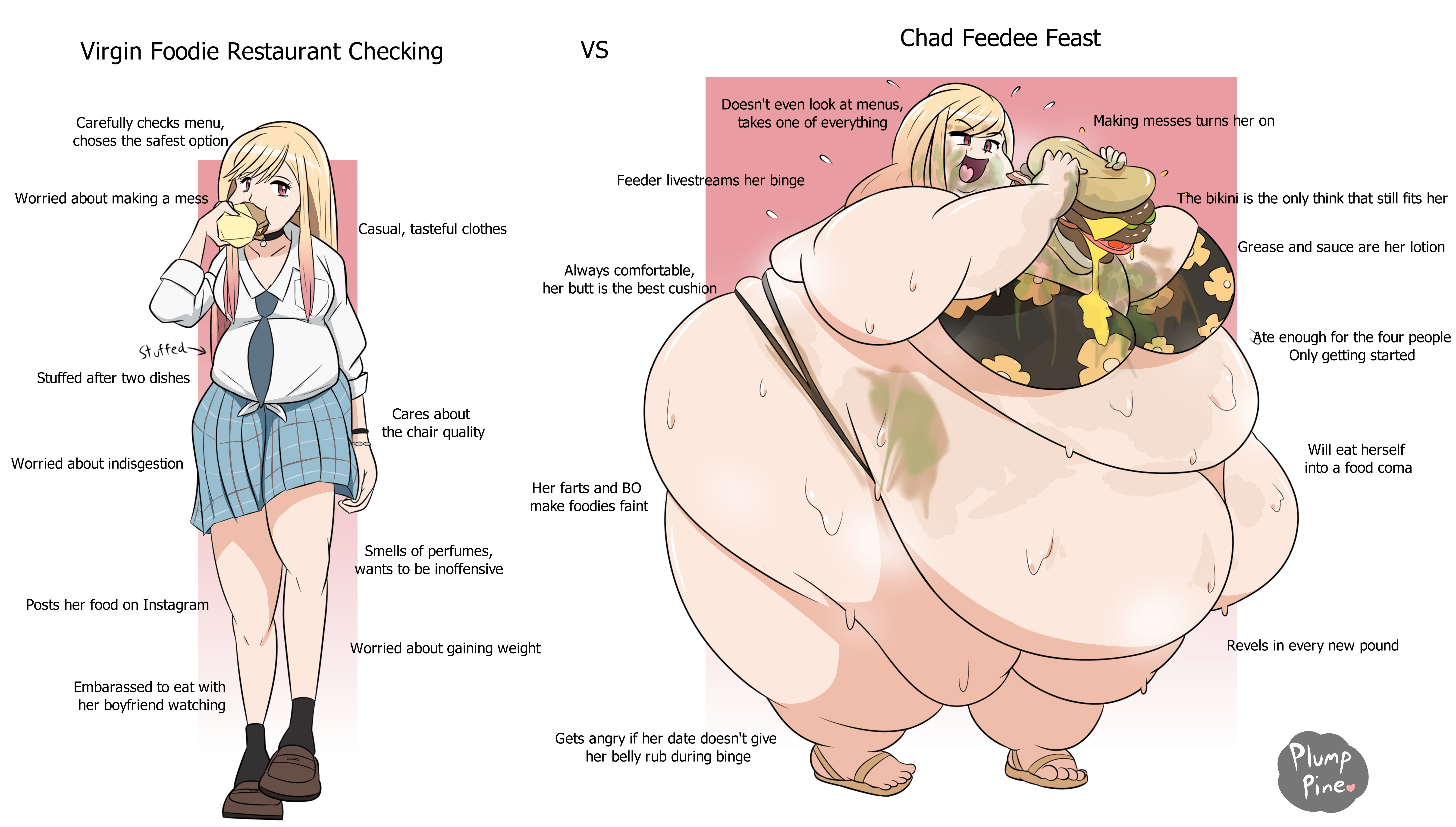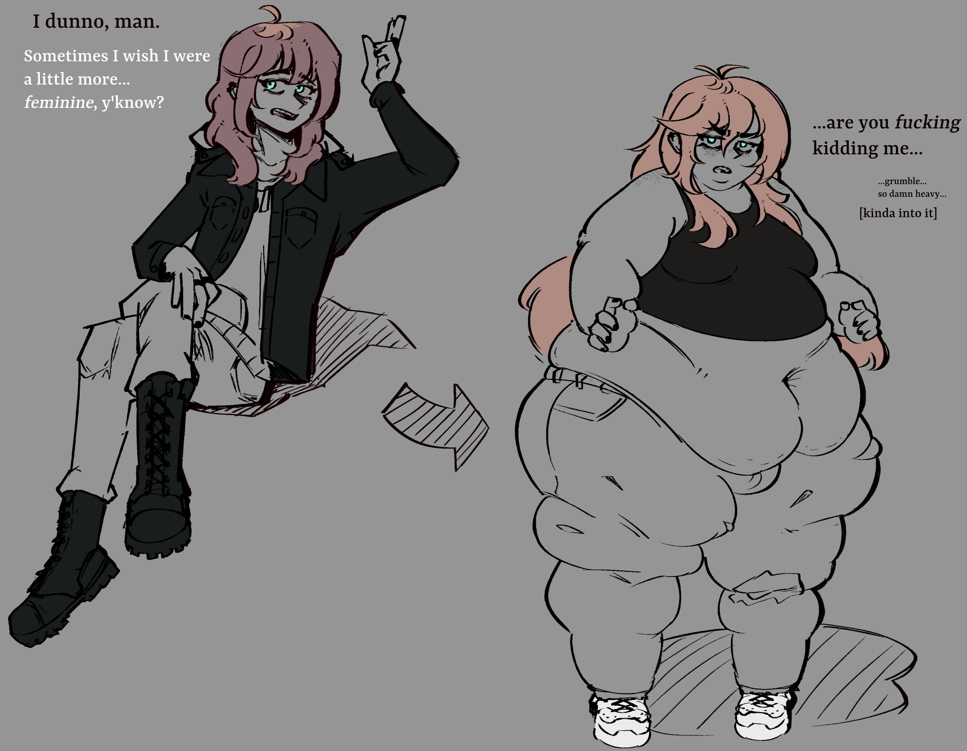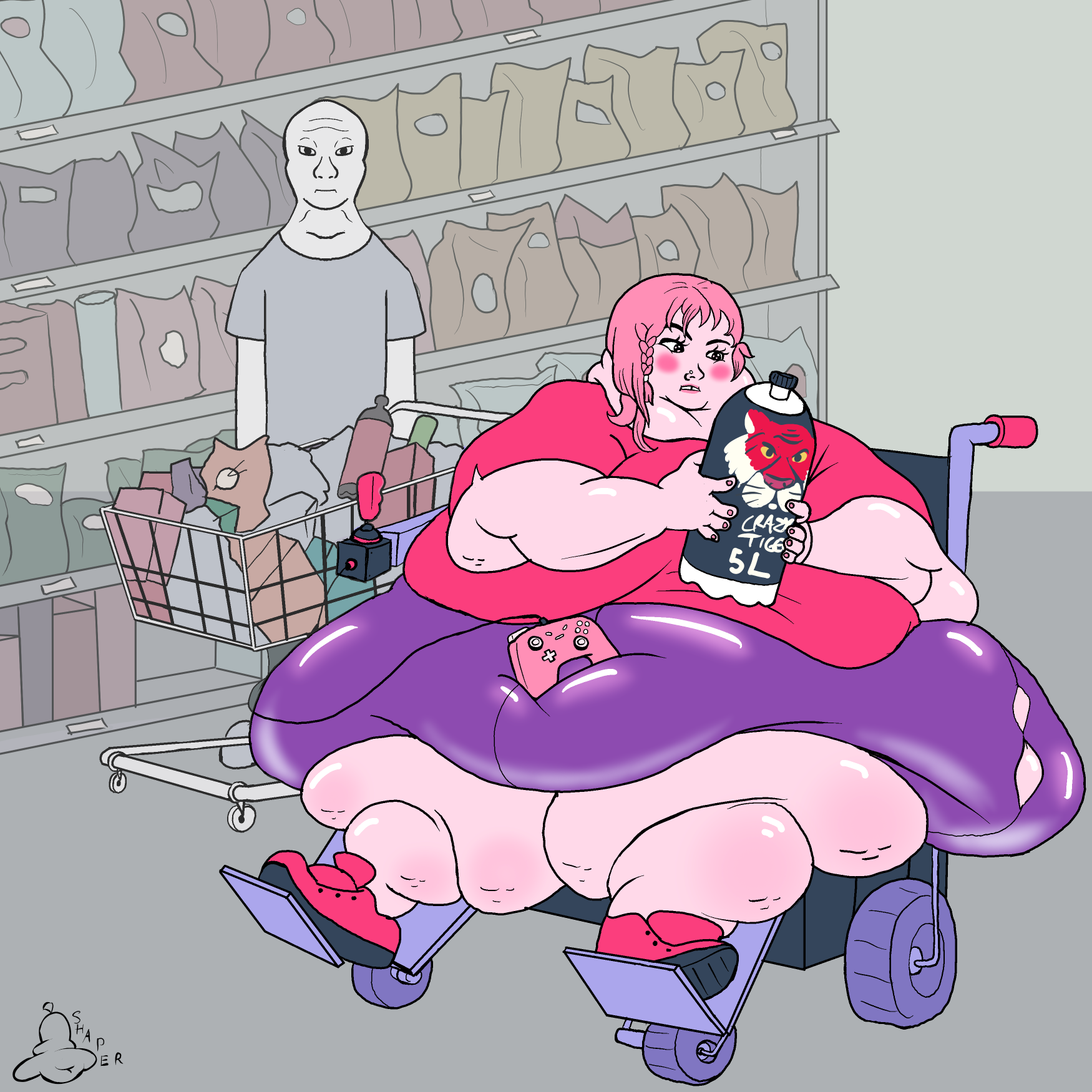 My gf is close to the stereotype as I've actually met, 430lbs+ (the scale maxed out) doesn't leave the house for months at a time, survives primarily on nuggies and milk, plays league of legends /Overwatch and sleeps all day. I've attempted bringing up the idea of gaining more but sadly not much luck, she could be truly massive if she just embraced her greed, but I obviously don't want to ruin a good thing