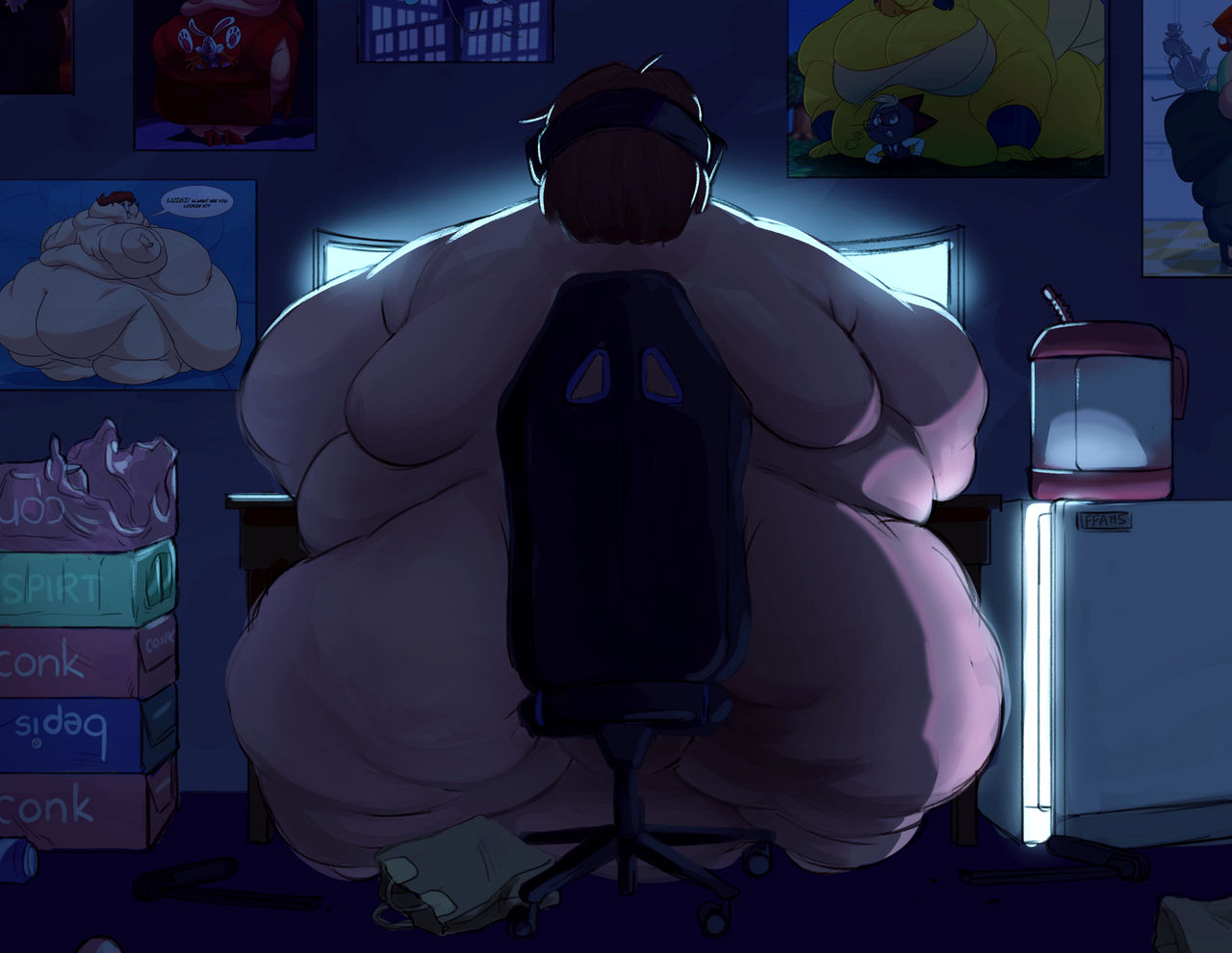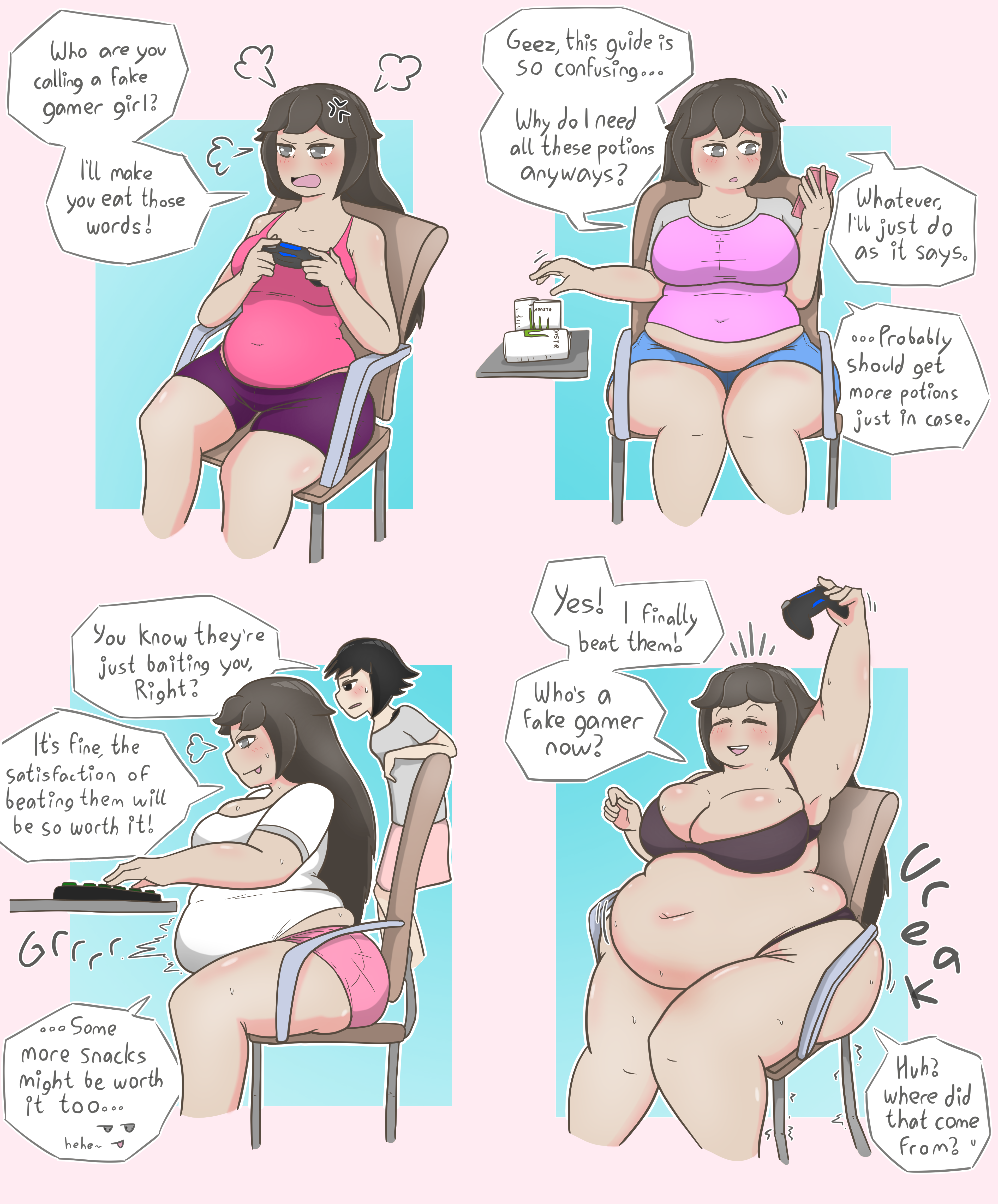 I really also like entertaining the thought of these big heavy gamer girls masturbating a lot. Like they just leave a vibrator in their crotch while they game and eat for hours.