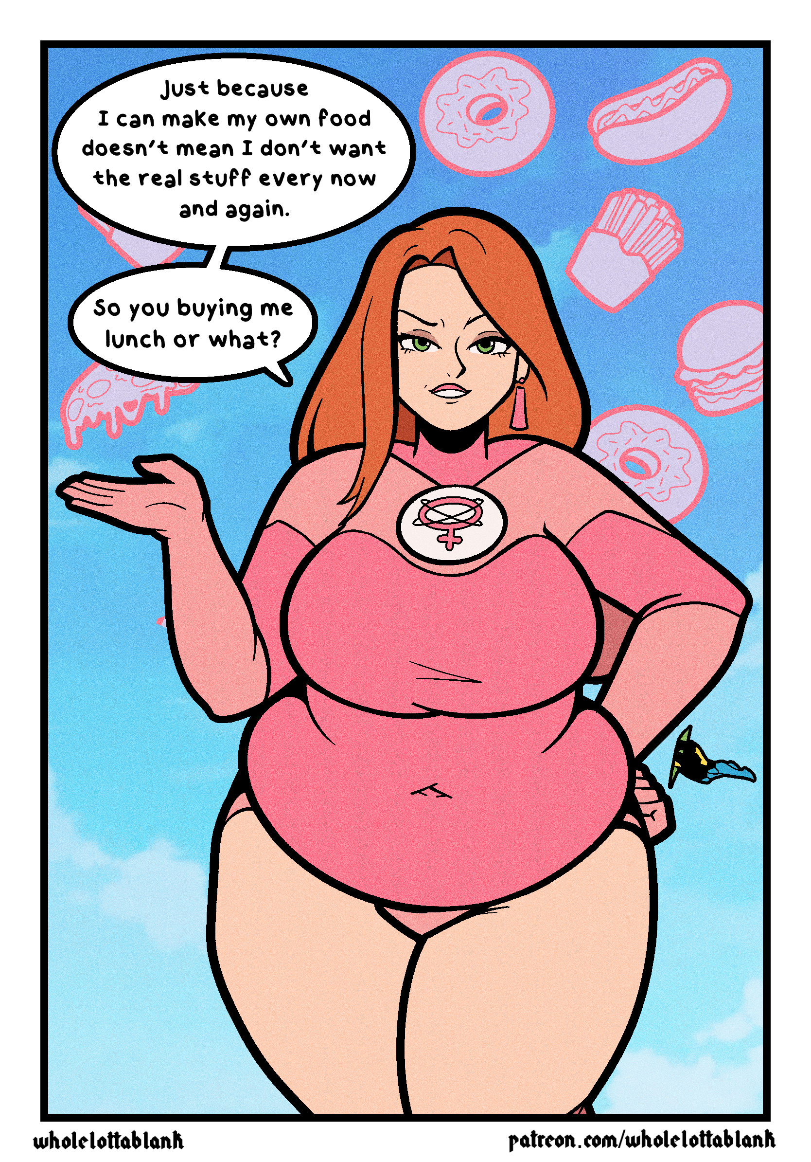 She is hands down THE best GF/Wife in comics in my mind. Loving, supportive, and WOW does she look amazing with the extra weight. Can't wait for the show to adapt her new fat ass.