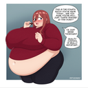 I wish the Selene sequence had more horny elements. Its hot seeing a girl gain weight, but when the pages are nothing, but her laying on a couch just consuming and being exhausted makes it feel kind of boring. Wheres the blushing or excitement from her becoming bigger? I want to see her feel horny, beg for more food, try to touch herself ect and not just look zoned out or exhausted. So far the only hot pages were when she was being tube fed and her on the bed after being stuffed with food. Hoping to see something more interesting soon and if not its just gonna be another mid sequence