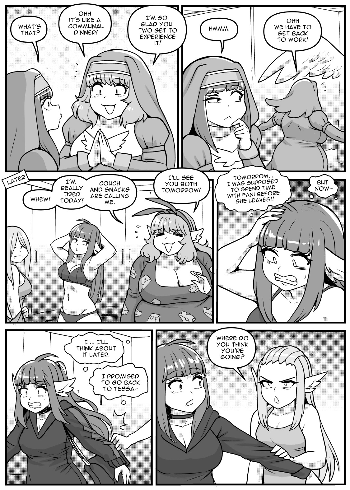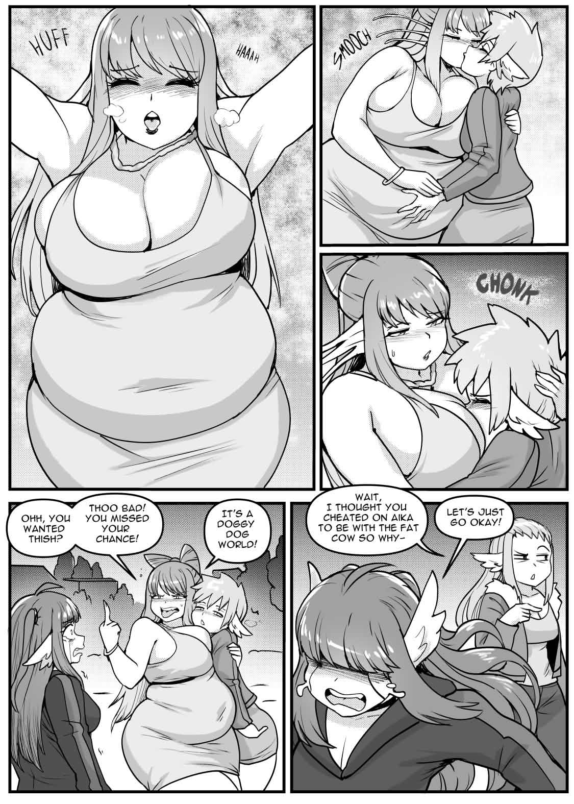 The only character that seems to be able to resist Tessa's calcium cannons is Stacy. Aika, Saiya, and Tania have all been seduced by the heavies. Maybe depressed Saiya seeks comfort in food and gets fat now?