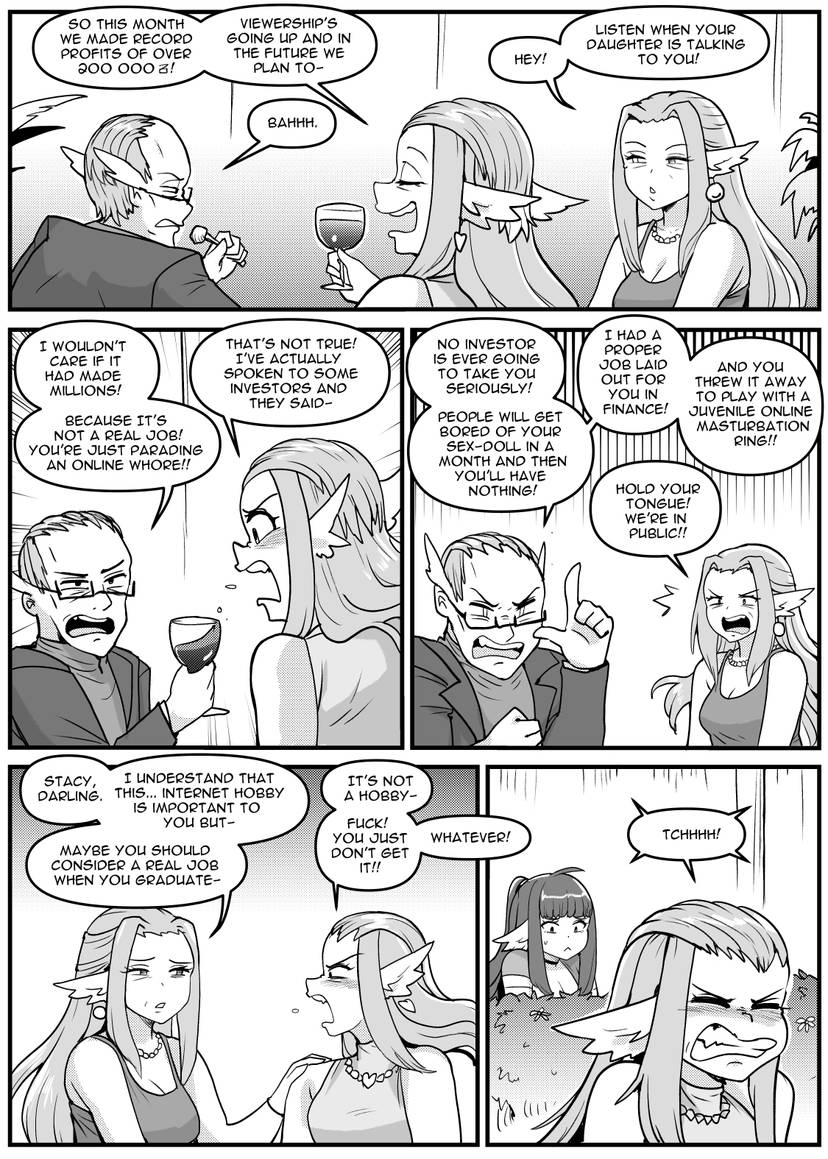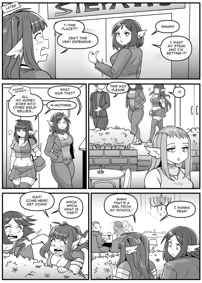 I think Kip still feels deeply guilty for the lolicon, incestuous story that was Breakfast with Sister. Evidence for this was in their handling of the DwS ending - some sort of post nut clarity previously unheard of that made her want to wrap it up in a wholesome way and move on. For years now they've been (subconciously) trying to make up for this by trying to create some idealized form of Elevated Fetish Literature™, not realizing that sometimes all the people want is characters they like getting fat and hot scenarios with said characters. No Lunch Break seemed to be right at this intersection at its best, but I think OSC was perhaps just too ambitious, and now they don't know how to wrap it up. I feel like there was definetly some vague outline of a plan, but we've veered very far from that vague outline. I also think the ending (if there was any) has seen countless revisions already. Less is more should really be something Kip keeps in mind when doing a future project. It's a real shame about these characters because they had a lot of potential. Perhaps some spin-off story will serve them right.