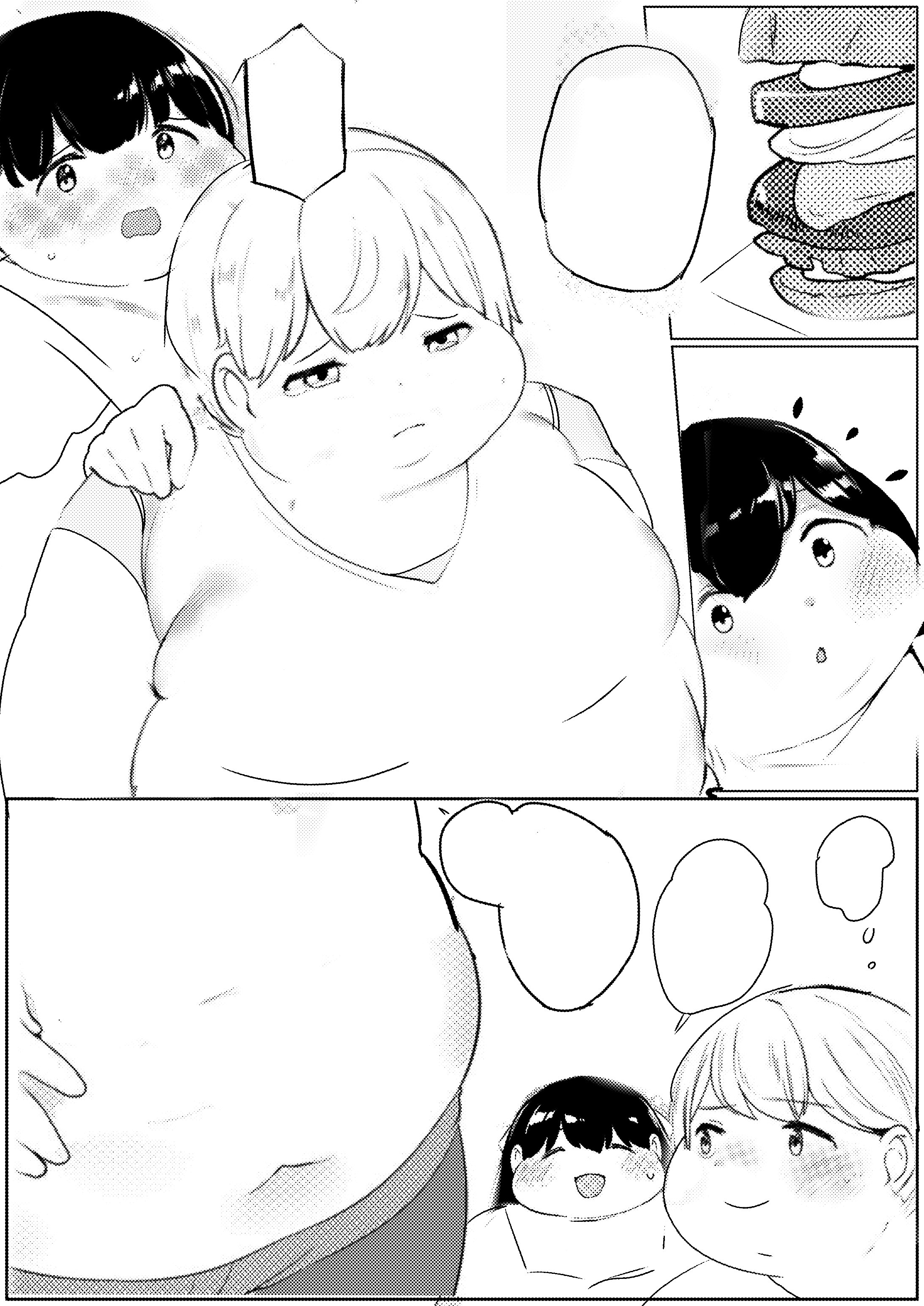 Ayano reaches a massive weight that leaves her completely immobile in her bed, in a messy apartment. Her friends Miyuki, Moemi, and Rio, already noticeably obese and soft, take devoted turns caring for her: feeding her, bathing her, moving her heavy folds, and attending to her every need, while they themselves continue to gain weight with pleasure. Ayano becomes national news as an extreme case of voluntary obesity, generating debate, criticism, and public fascination that influences more young people. Her university offers her a special 100% online program, personalized classes, and logistical support to continue her studies from bed, in exchange for her voluntary participation in a medical-psychological study on extreme weight gain.