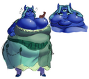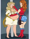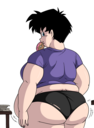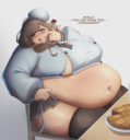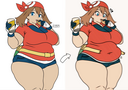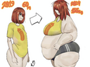 Bit of a long shot, but I’m looking for an image of Jane Porter from Tarzan. She has blob proportions, and is in a daze from a food coma. Her navel has a banana sticking out of it with a Queen La (TV show villain I think) resting on her belly. I saw it a few days ago, but I can’t remember where. Not sure how old the image is either, but it seemed to be pretty clear. Her size and shape was something Ashenwolf might do, but the style was a more western cartoon focused.