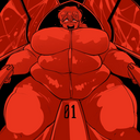 Looking for a pic of a shadow girl with glowing red eyes and a gigantic ass laying down at looking at the viewer. Can't remember who made it. I think she was also wearing a red vest.