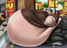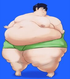 >>1696 Requesting Bolo from the Shantae series with a build similar to the other pics. I'd prefer something overall similar to the third, (especially the shape of the belly and that big fold) though I'd prefer a clothes distribution similar to the fourth. Speaking of close, it would be nice to emphasize that what were once loose and free-flowing are now tight and constricting. Emphasis on the legs would also be appricated,, esepicaly with a wide, Bobbi-Jo-esque ass. Would also be hot if he was gorging himself on burgers while jerking his giant cock. Any usage of him having an extraordinarily huge cock will be apriciated, but it isnt stricly nessicary. Maybe he could lie down, exaushted after a training session. I've also included some other bhm pics I like for inspiration.