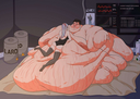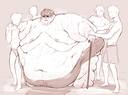 I'm barely half his weight at 290. I need to become that big. That soft. That round. That breathlessly tired, from simply walking around. I want to feel my heart hammering away from standing up to leave the buffet table. Muscles crying for mercy from lifting them from their two resting positions: on my sides or resting on my gut.